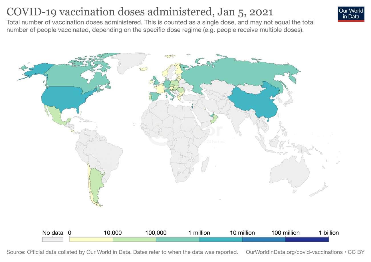 El sorianense Gregorio Iraola, doctor en Ciencias Biológicas  y jefe del equipo del Institut Pasteur  opinó  en su cuenta de twitter  la necesidad de efectivizar un plan de vacunación contra el Coronavirus para frenar la pandemia. El científico escribió: “El mapa mundial de la vacunación contra #coronavirus, ¡es imprescindible tapar esos grises! Israel lidera con más del 15% de su población ya vacunada en menos de 2 semanas, un país con 2,5 veces más población que Uruguay y un área 8 veces menor”.