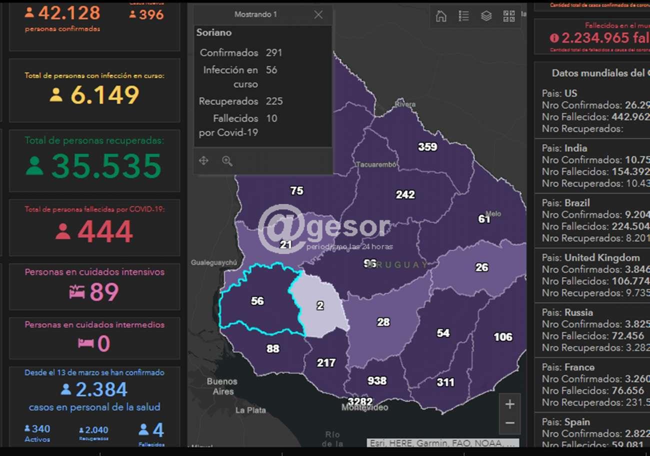 Con esta situación Soriano tiene actualmente 56 casos activos. Desde marzo del año pasado a la actualidad se han registrado 291 casos en el departamento, 255 personas ya se recuperaron de la enfermedad y 10 fallecieron.