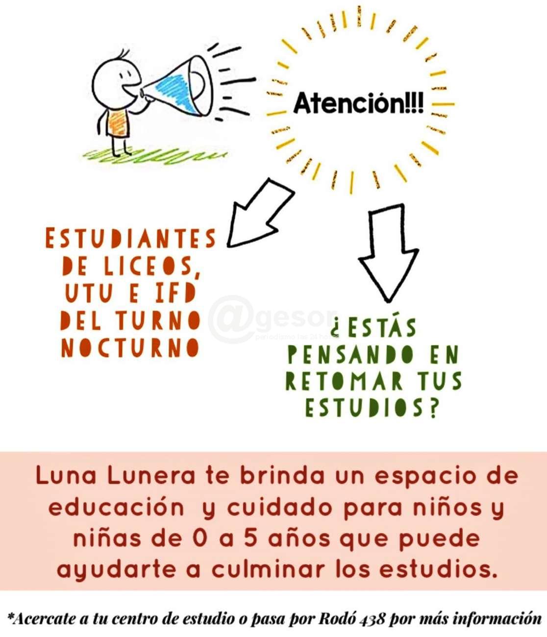 Gabriela Cabrera, Coordinadora de Luna Lunera dialogó con @gesor para informar sobre las inscripciones de esta propuesta que permite a papás y mamás que desean continuar sus estudios y no tienen con quien dejar sus hijos de 0 a 5 años, contar con un lugar donde estarán debidamente atendidos, con técnicos y una infraestructura adecuada que les dará tranquilidad para desarrollarse en los estudios sabiendo que sus hijos estarán muy bien cuidados.