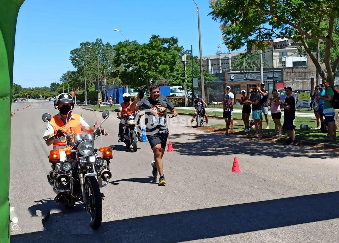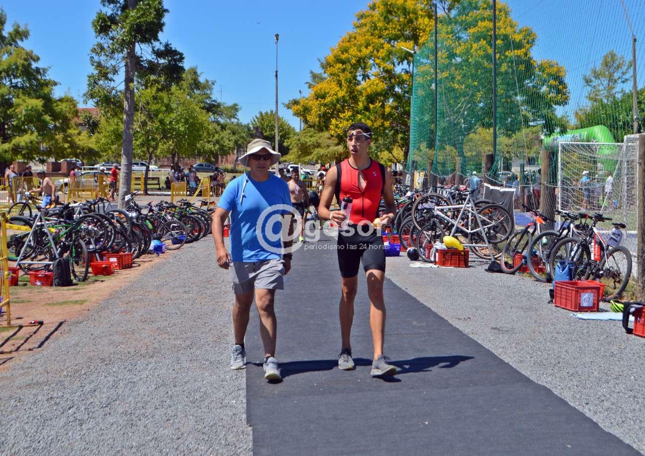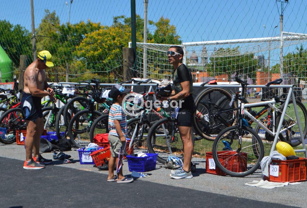 @gesor les ofrece otras imágenes de una mañana en la que 67 atletas de diferentes puntos del país tomaron parte del quinto Triatlón del Club Remeros Mercedes en las disciplinas natación, atletismo y ciclismo en forma individual y que tuvo el triunfo en la general a nivel masculino del fraybentino Santiago Sierra y en femenino de la mercedaria Ynela Aire.