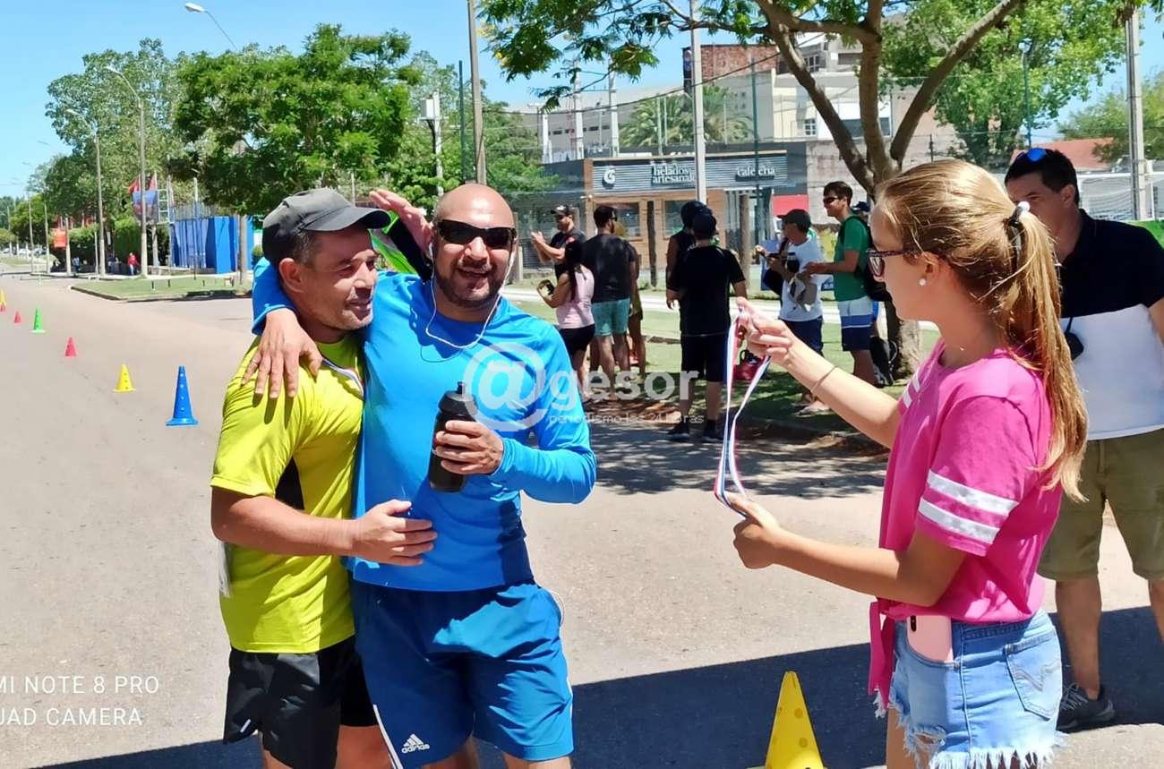 Aquí algunas de las imágenes de la llegada, de las zonas que se crearon para el material que iban utilizando entre prueba y prueba y la posterior ceremonia de premiación, en la que también hubo reconocimientos para el atleta de mayor edad con 70 años, y para los socios a nivel masculino y femenino que tuvieron mejor participacion, en este caso fueron Gabriel Priano e Ynela Aire respectivamente..