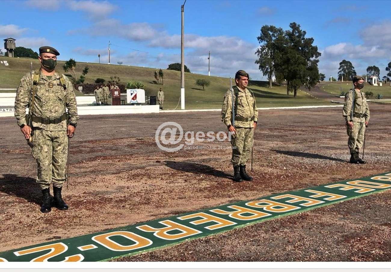 En la oportunidad asumió la segunda jefatura el Mayor Eduardo Mendoza, oriundo de la ciudad de Mercedes, en la fotografía, de frente el primero a la izquierda.