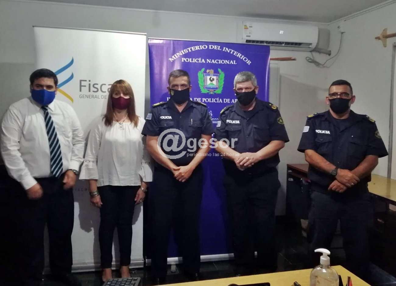 En la sede de la Fiscalía de Bella Unión se llevó a cabo conferencia de prensa con la participación de la Dra. Silvia Ferreira Moraes, Fiscal Letrado subrogante de la Fiscalía de Bella Unión, el Dr. Andrés Prícoli Fiscal Adscripto (no estuvo la Fiscal Adscripta Dra. Ana Iriarte que también trabajó en el caso), junto al Jefe de Policía de Artigas Crio. May. Adolfo Cuello. Coordinador Ejecutivo Crio. May. Ruben Olivera y el Director de Seguridad Crio. May. Rafael De los Santos.