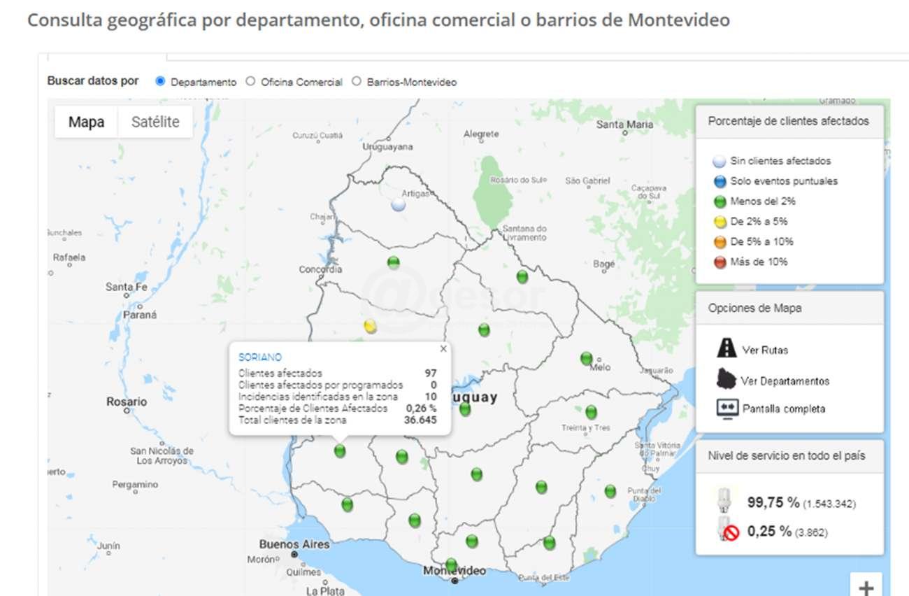 Unos 97 clientes de UTE tienen afectado el servicio de energía eléctrica a esta hora, según informa el organismo, como producto del viento registrado en la noche del lunes. La tormenta que se registró en esta zona del país provocó la caída de postes del tendido eléctrico en Paso de Ramos y en zona próxima a La Concordia. En tanto cerca de Palmitas el viento provocó la voladura de un techo de zinc y otros daños menores en la zona de ruta 2.