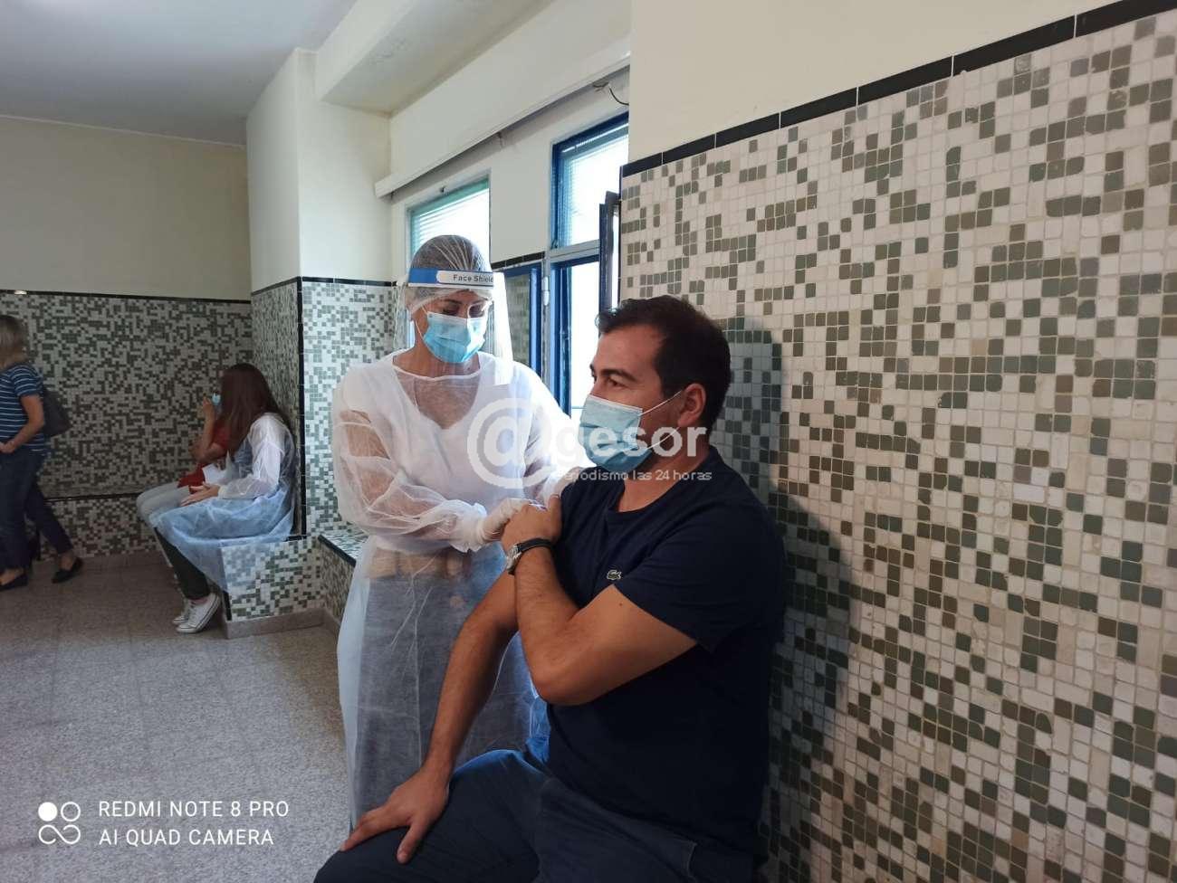 Fue inoculado por el funcionario Gustavo Manzanares, previamente pasó por la funcionaria administrativa María que le tomó los datos filiatorios y le hizo firmar el consentimiento, luego pasó al sillón y allí recibió la vacuna.