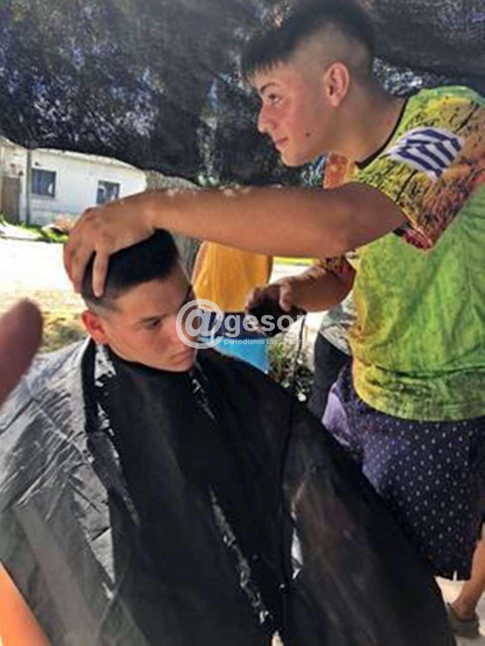 El grupo estuvo junto a los niños, realizando cortes de pelo, compartiendo meriendas y ofreciendo su show