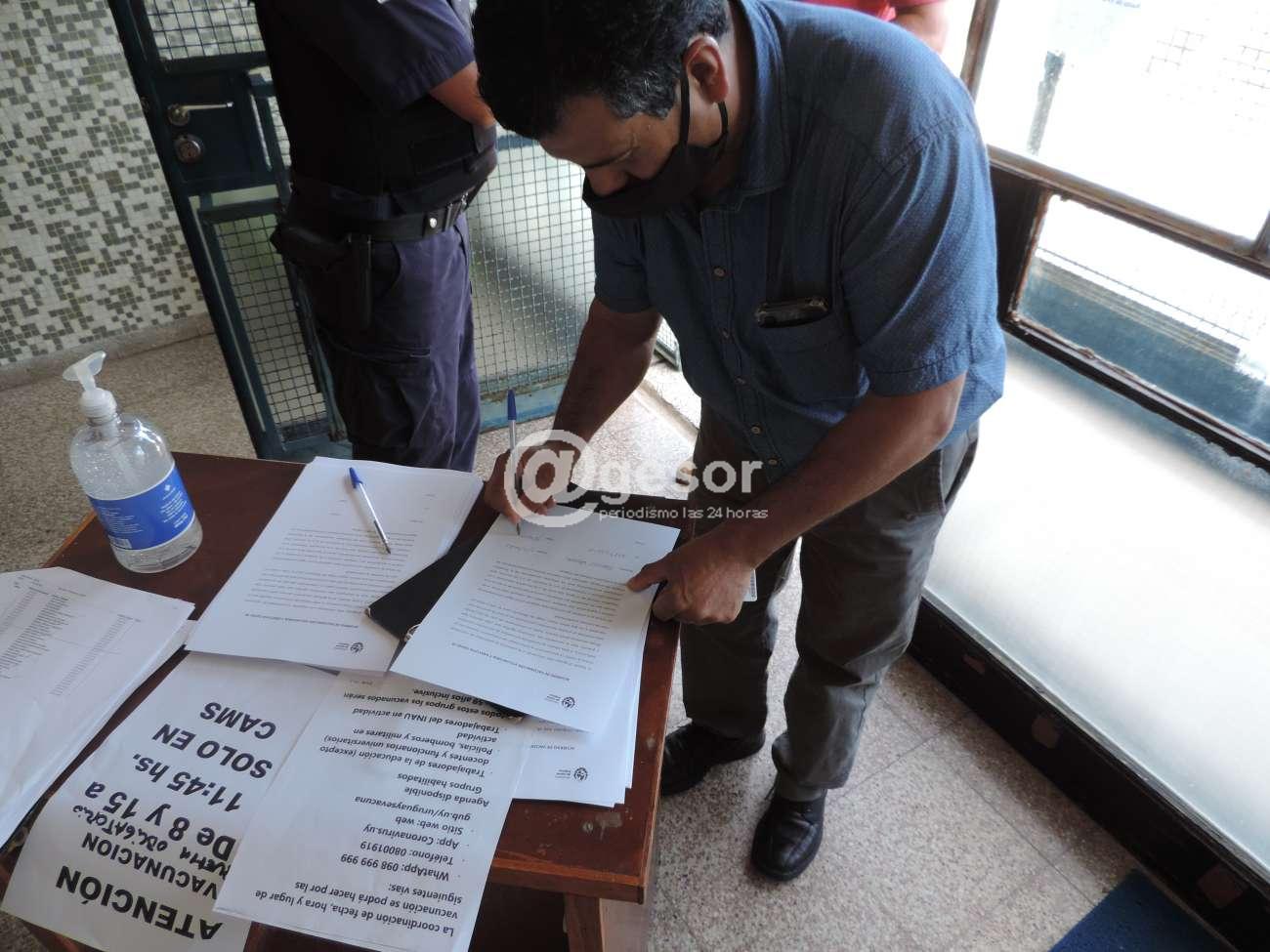 Previo a ingresar al vacunatorio las personas que se agendaron  con antelación   además de cumplir con el protocolo sanitario, es decir, usar tapaboca, controlarse la temperatura corporal  y usar  alcohol en gel, deben firmar  un acuerdo. Ver aquí: http://www.agesor.com/noticia.php?id=49006