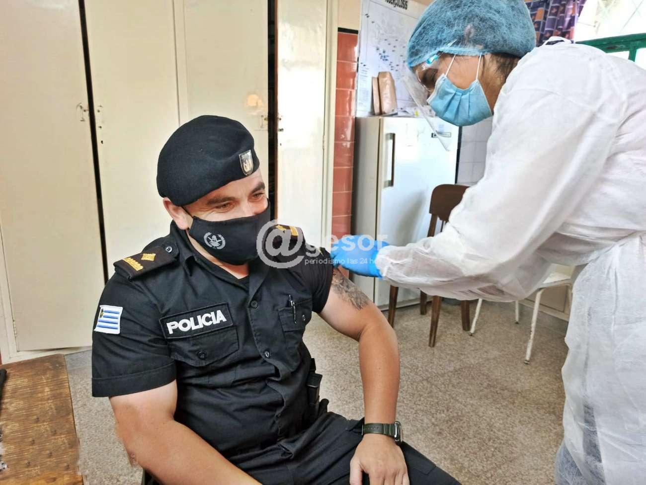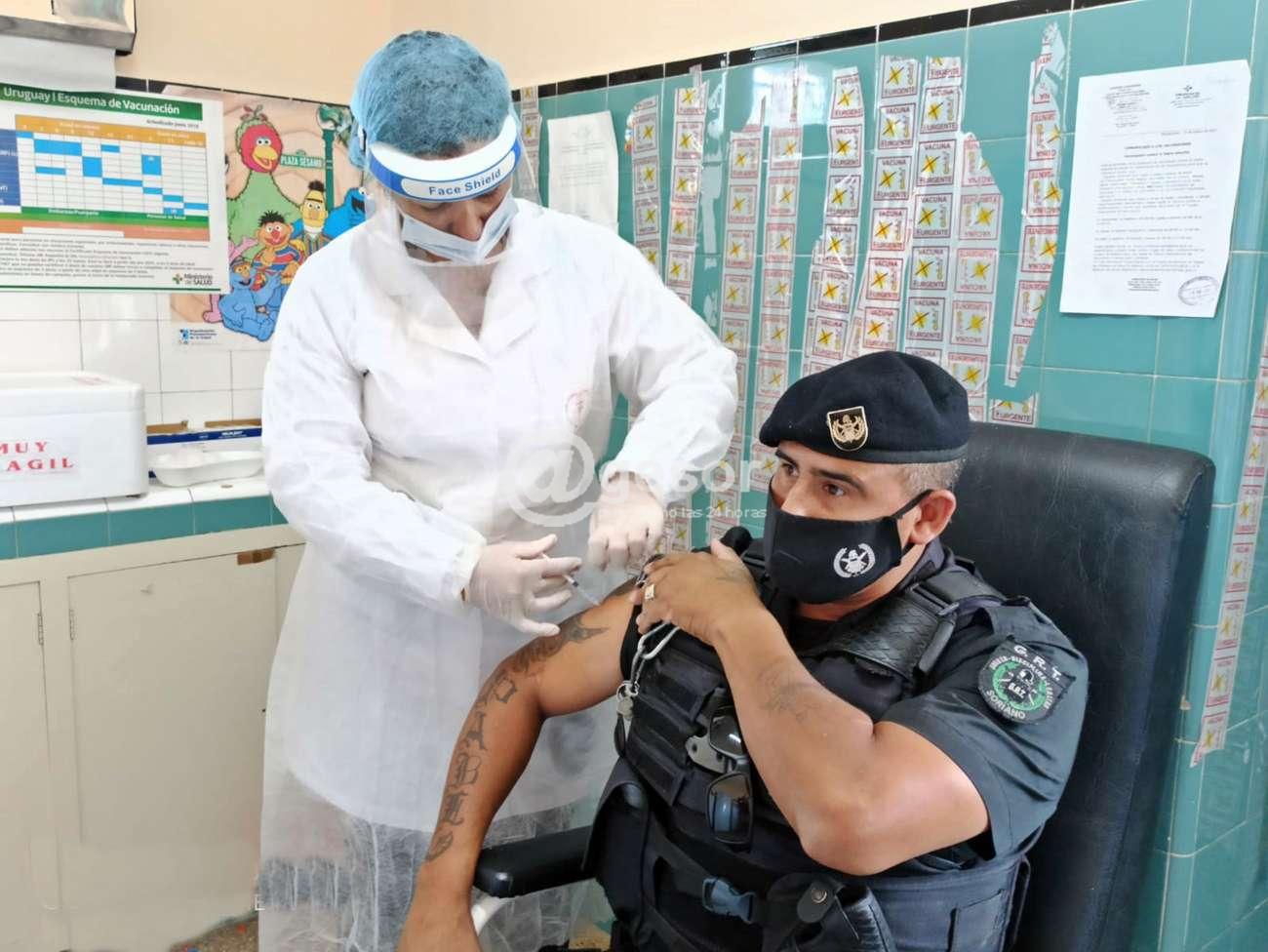 En el inicio de la campaña de vacunación contra el Coronavirus Covid-19, en el vacunatorio de Mercedes, entre los dos puestos que allí funcionan en el Hospital "Zoilo A. CHelle" pudo apreciarse y así lo registró la cámara de @gesor, la presencia entre otros del Director de la Unidad 24 del INR en Pense, el SOM Miguel Herrera (foto 1), también entre quienes se agendaron y concurrieron estuvo el Jefe del Grupo de Reserva Táctica (GRT) de la Jefatura de Policía de Soriano, el Sub Crio. Ricardo Miraballes, asimismo pudimos apreciar a la Subdirectora de la Escuela Técnica "Pedro Blanes Viale" Maestra Técnica Ana Haller, entre otros funcionarios de reconocida actividad en el medio, que como docentes, funcionarios policiales, militares, de Prefectura, además de trabajadores de centros vinculados al INAU en la tarea con niños y adolescentes, quienes cumplieron con la inoculación para la cual se habían agendado y acá le dejamos algunas fotografías.