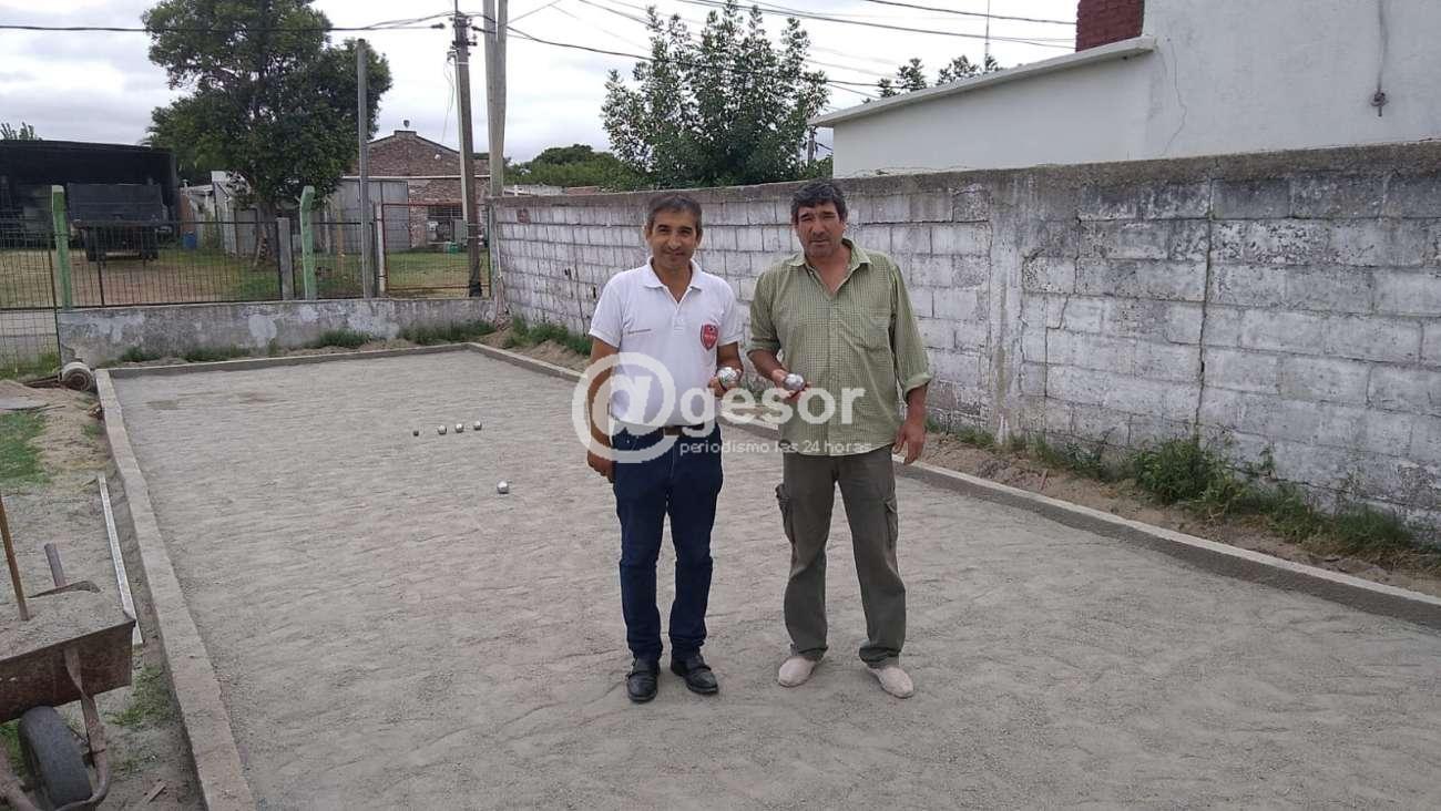 Washington Geymonay, un socio de Las Tunitas que se acercó a la institución para donar 20 litros de pintura jugó la primera ronda a modo de torneo experimental con las bolas de Petanca proporcionadas por el tesorero de la Federación Uruguaya de Bochas, Marcelo Expósito.