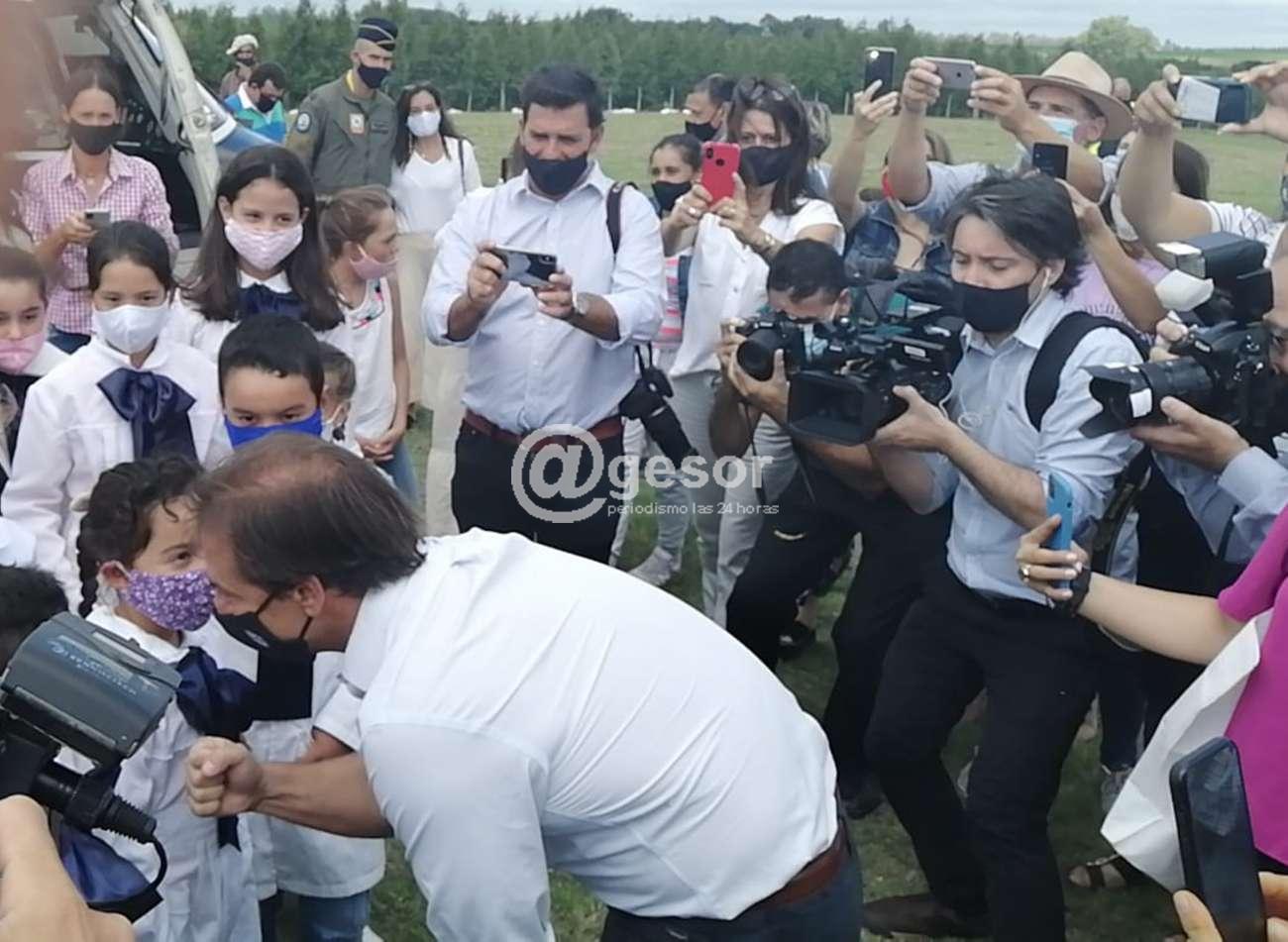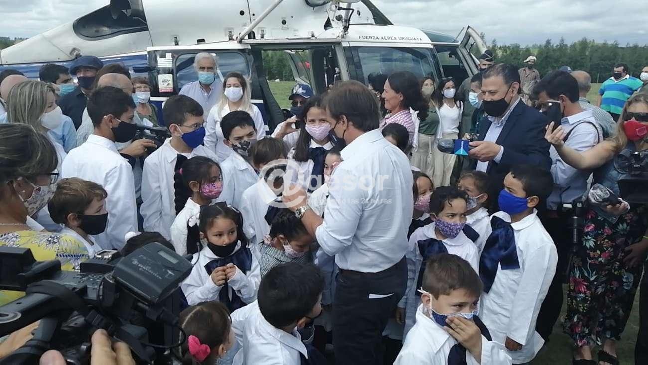 Estuvieron desde temprano aguardando la llegada del Presidente de la República, apreciaron la llegada del helicópero presidencial y luego fue el momento en que el propio mandatario se acercó a ellos, los saludó uno a uno, con el puño, dialogó con varios, y luego posó, niños y niñas que concurren a la Escuela 16 de Perseverano junto a sus maestras disfrutan especialmente de la presencia del Presidente Luis Lacalle Pou este viernes que ahora podrán concurrir a la Escuela sin que queden aislados al tener un puente digno, que no los deje aislados a quienes viven del lado de Lares o los ponga en riesgo al tener que cruzar por donde lo hacían hasta ahora.