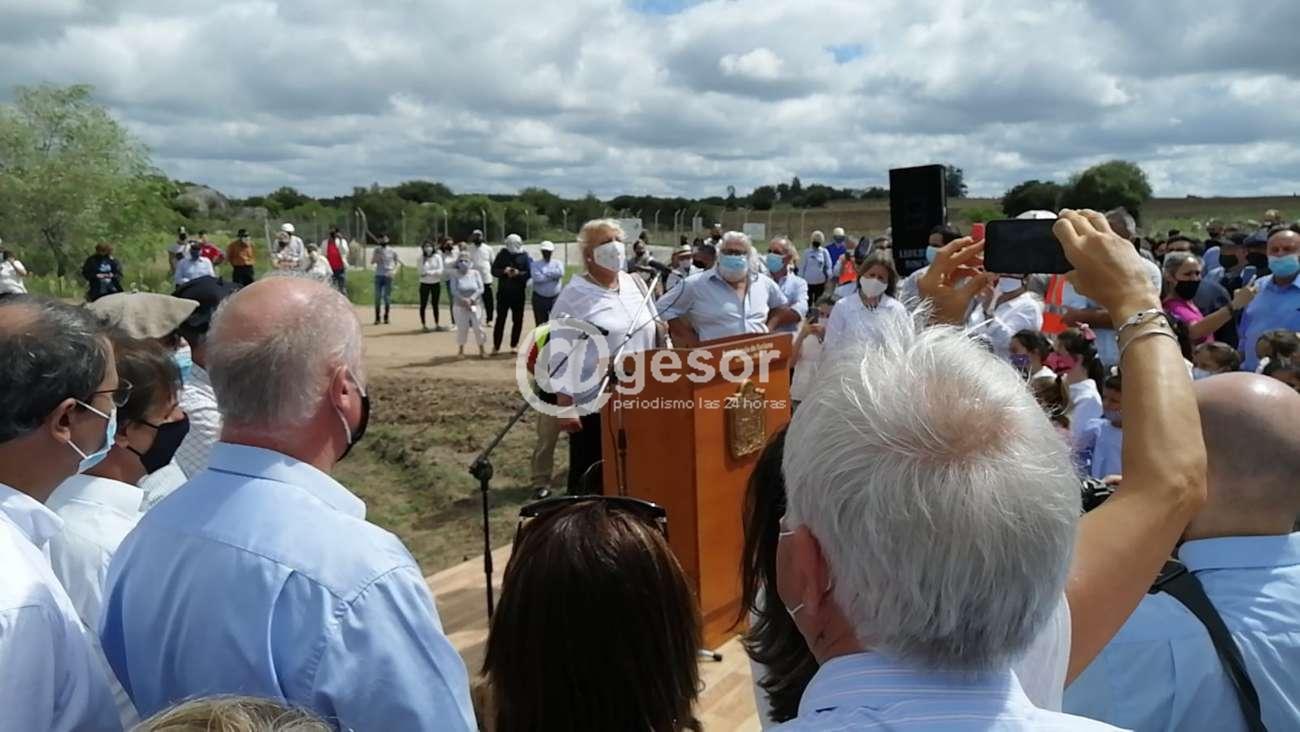 Machado se dirigió a "toda esta cantidad de gente que nos acompaña, en esta ceremonia que va a ser histórica, al Presidente Luis Lacalle Pou, el Ministro de Transporte y Obras (Luis A. Heber), el Intendente Guillermo Besozzi y todas las autoridades como el Alcalde del Municipio de Rodó (Washington Loitey), María Fajardo (Diputada), Coordinadores, Secretarios, a la gente de la Intendencia de Soriano, quiero agradecer. Gracias porque por años estuvimos aislados, por años nadie nos escuchó, por años salimos con gente con la camilla con el agua en la cintura, con muertos con el cajón arriba del hombro, los niños se quedaban sin estudiar, los niños no podían acceder al liceo, porque el agua crecía, todas esas cosas te llevaban a la impotencia, a amargarte, pero como no bajé nunca los brazos y tuve gente muy buena, gracias a Dios a toda esta y en el lugar que estoy le doy gracias a Guillermo Besozzi, ya que honorariamente trabajé limpiando una policlínica sin recibir una remuneración y él cuando entró por primera vez fue quien me puso como personera y hoy estoy en el lugar que estoy gracias a él y a Luis Ciganda que fueron las personas que pusieron en este lugar".