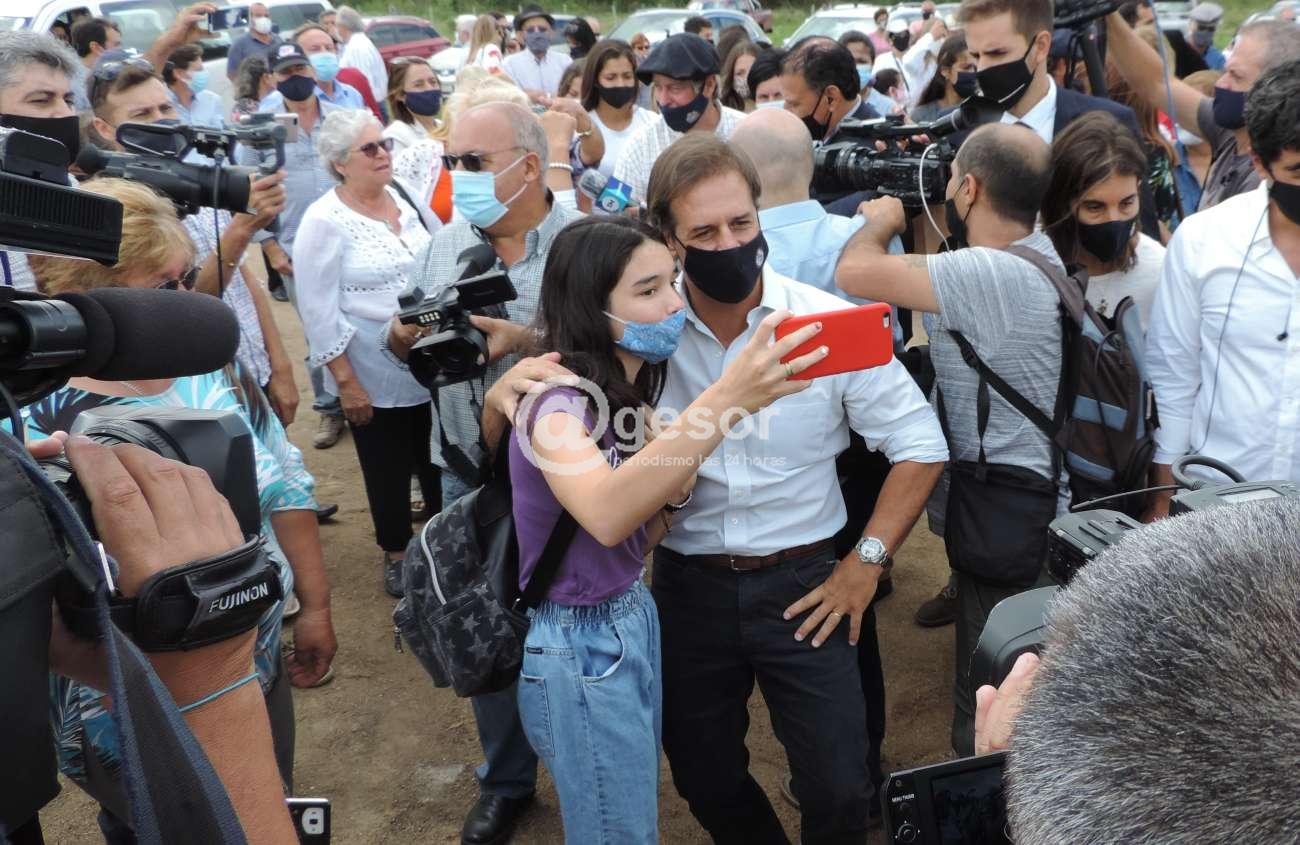 Entre todos los que se agruparon junto al Presidente se acercó un adolescente, con un libro en la mano para que se lo firmara. El libro en cuestión “Luis Lacalle Pou Presidente” de Esteban Leonis, donde se recoge el período de la campaña electoral, la construcción de la coalición, el resultado electoral y toda la transición hasta quince días antes de asumir como presidente.