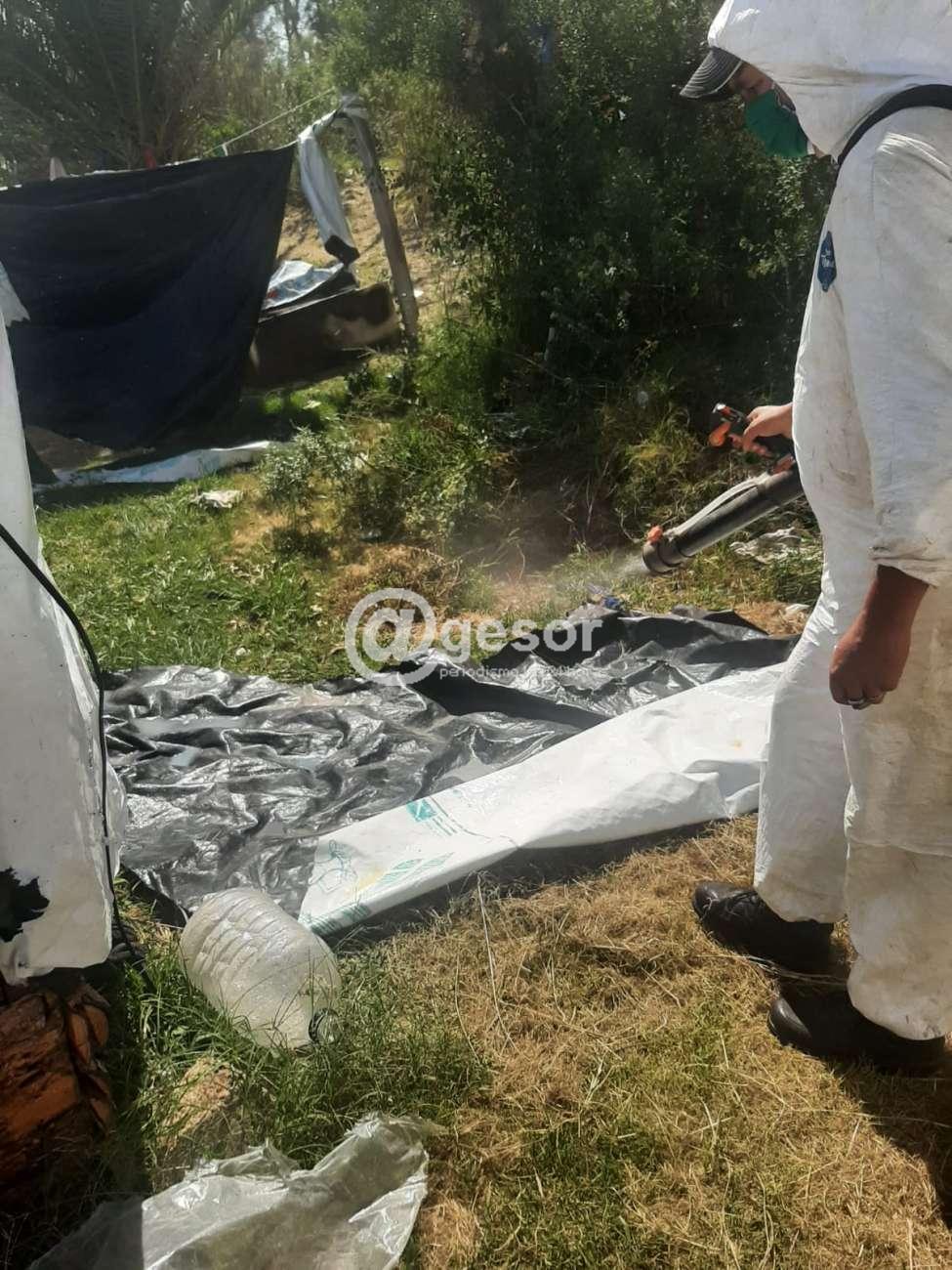 Personal de la Dirección de Higiene de la Intendencia de Soriano realizó este viernes, una tarea de desinfección en el asentamiento situado cerca de los silos de Calmer, junto a las vías férreas de AFE.
