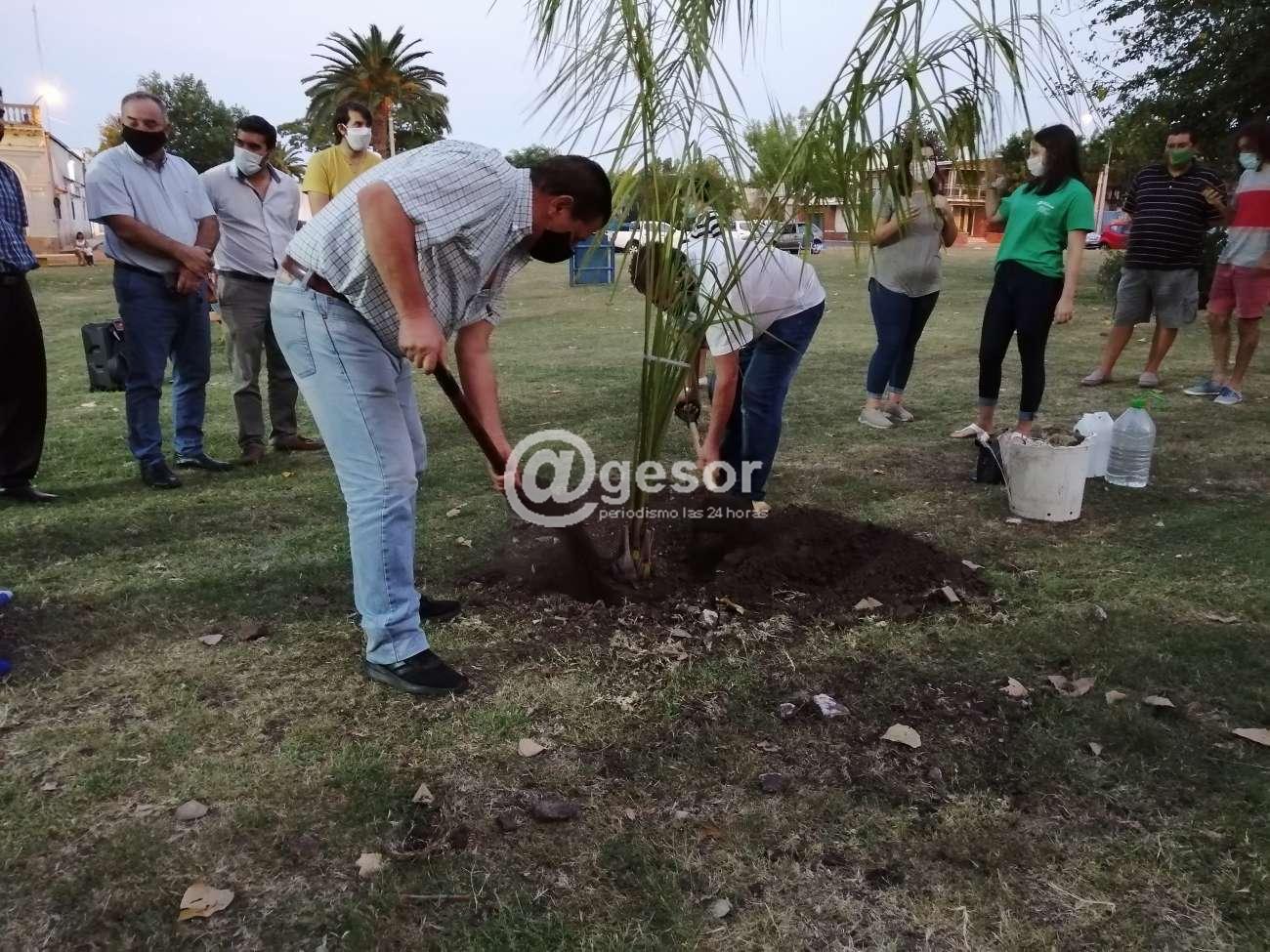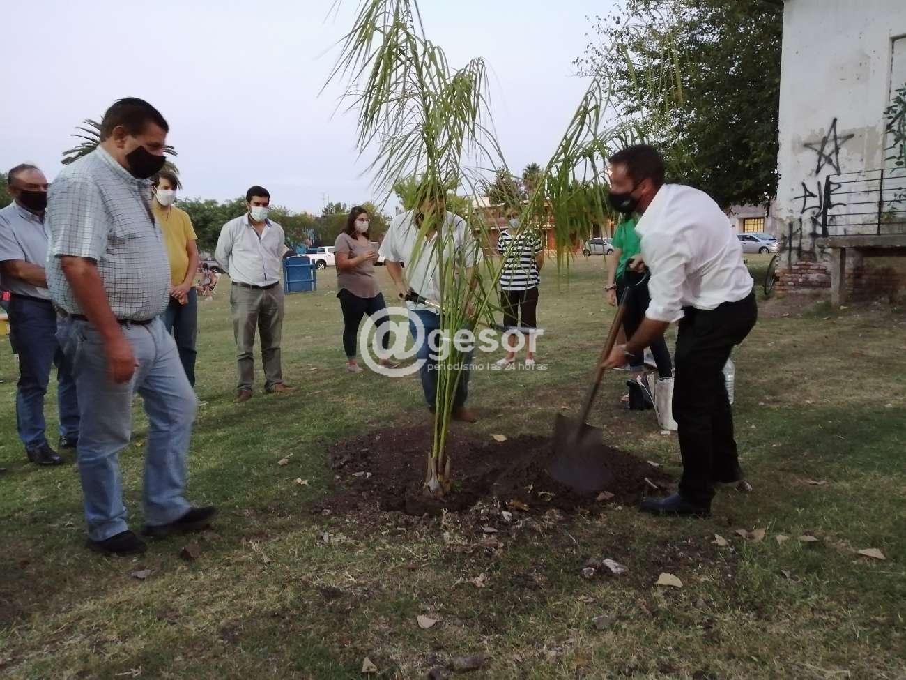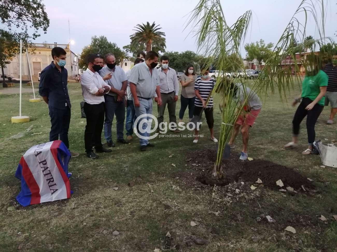 Posteriormente entre todos los presentes se plantó una palmera y se descubrió una placa en recuerdo de este aniversario.
