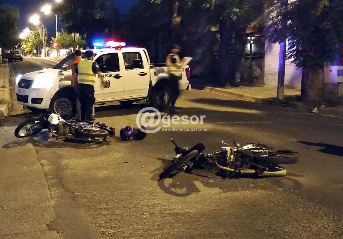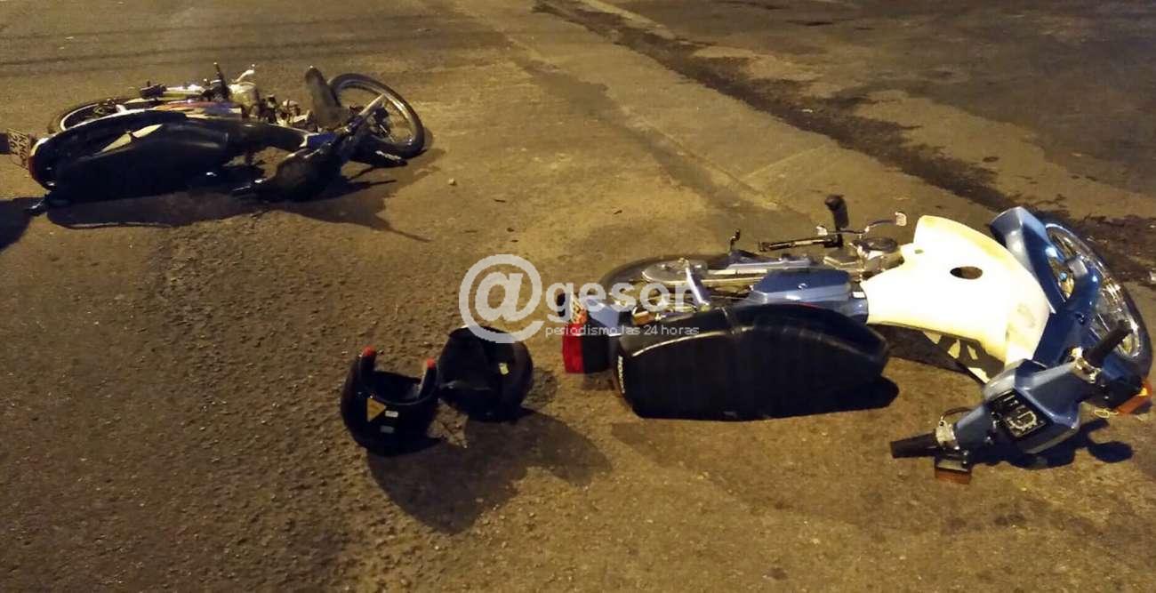 Siniestro de tránsito se produjo en la noche de este domingo en la intersección de avda. Fregeiro y 18 de Julio, donde entraron en colisión dos motos.