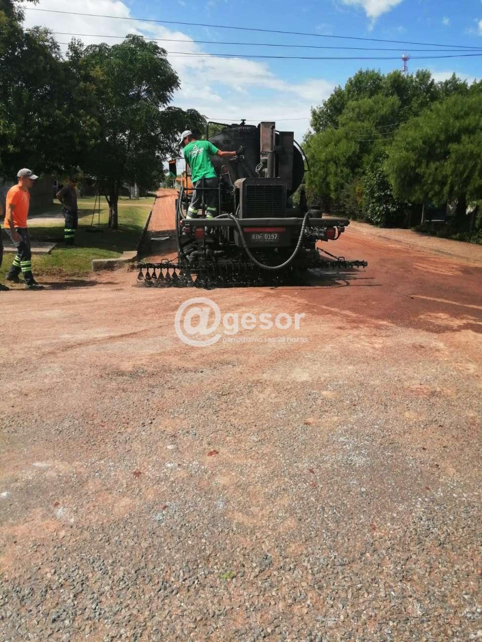 Este proceso, previo a la aplicación de asfalto con gravilla se realizó luego de retirar la capa bituminosa deteriorada y acondicionar la base con material granular.