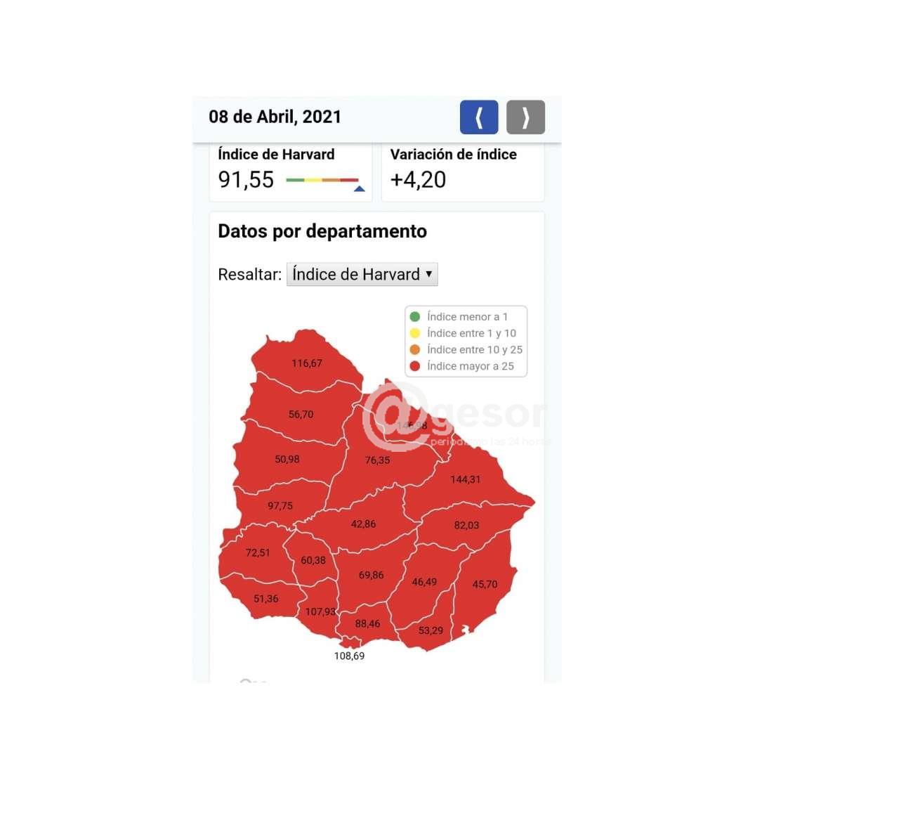Este jueves 8 de abril el Sinae dio cuenta de 91 casos nuevos de Covid-19 en el departamento, el número más alto registrado en 24 horas desde que se declaró la emergencia sanitaria. Afortunadamente en esta jornada no se registraron decesos producto de la enfermedad.
