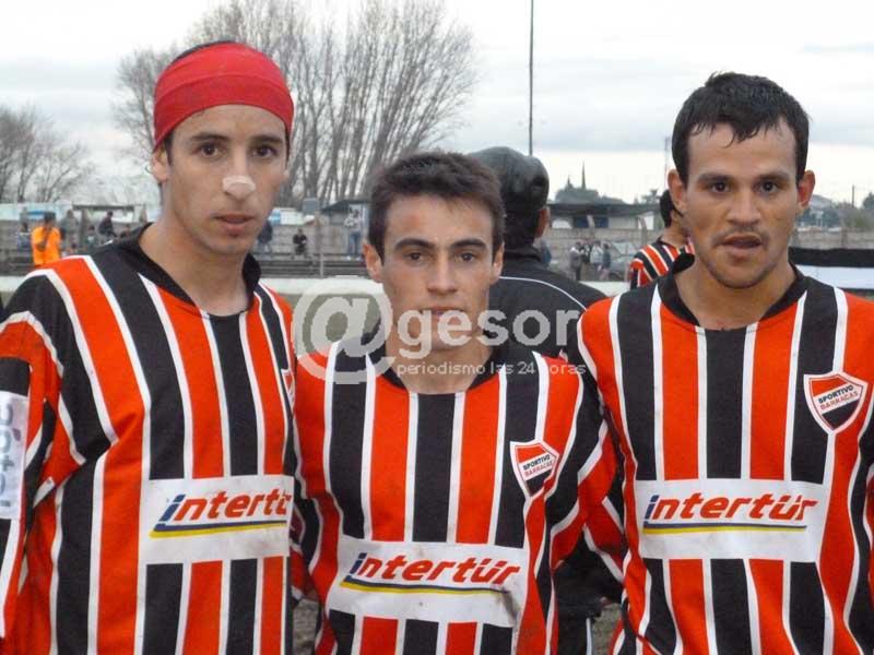 En la fotografía Germán Ríos, Ives Corgatelli y Alvaro Zapata, autores de los goles de Barracas.