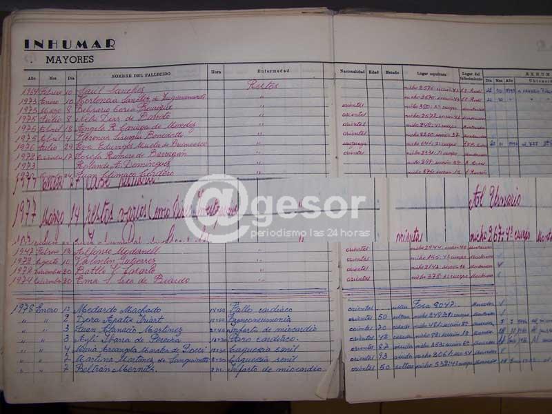 Cabe señalar que en el cementerio, no se da curso a ninguna inhumación si no se cuenta con la boleta correspondiente expedida por la oficina de la necrópolis, es decir que todo resto que ingrese para ser inhumado debe quedar registrado y allí surge otra situación irregular, las libretas que van desde 1972 a 1983 ¡desaparecieron!