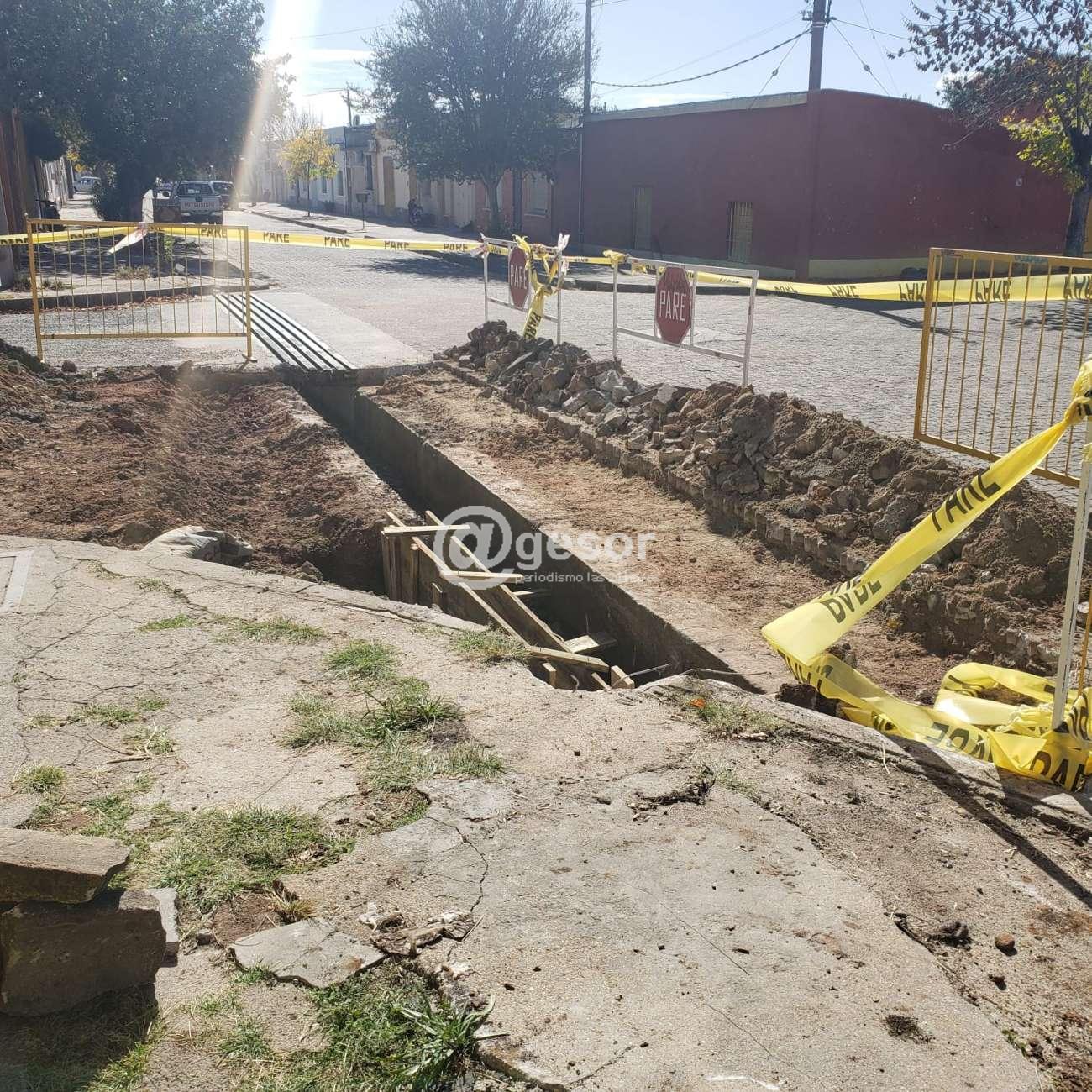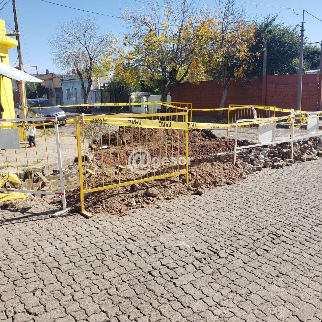 La obra puntual es la de recomposición de la base estructural para posteriormente aplicar hormigón y culminar a instalando una nueva reja que cubra el alcantarillado.
