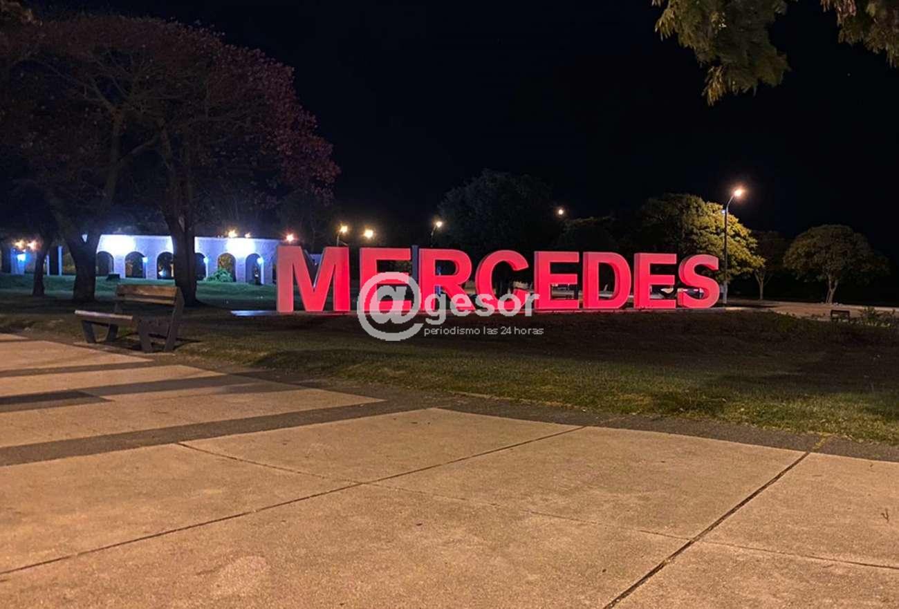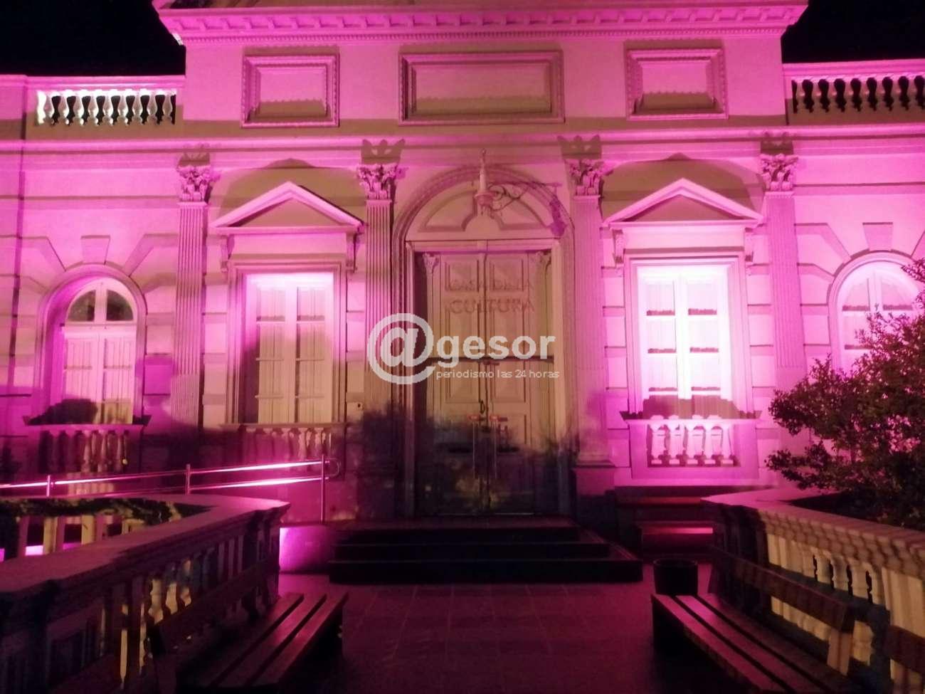 Letras corpóreas y edificios emblemáticos iluminados en homenaje a Cruz Roja Internacional, como adhesión de la Intendencia de Soriano en el día de esta institución.