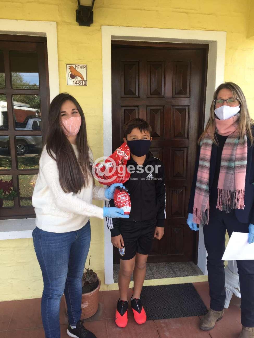 Es así que en previa coordinación con los directivos de la Comisión de Baby Fútbol del Club Social y Deportivo de Santa Catalina, la Secretaria de la Junta Local, Valeria González y la referente de la Secretaría de Deportes y Recreación de la Intendencia de Soriano, Lic. Noemí Viera, realizaron entrega de huevos de chocolate a niños y niñas de la localidad.