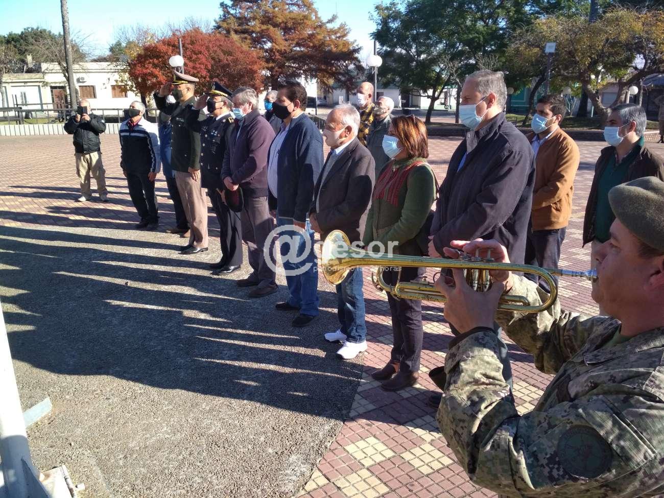 La actividad tuvo lugar en la plaza Artigas de la ciudad de Mercedes, donde solo se colocaron ofrendas florales al pie del monumento al Prócer de la Patria.