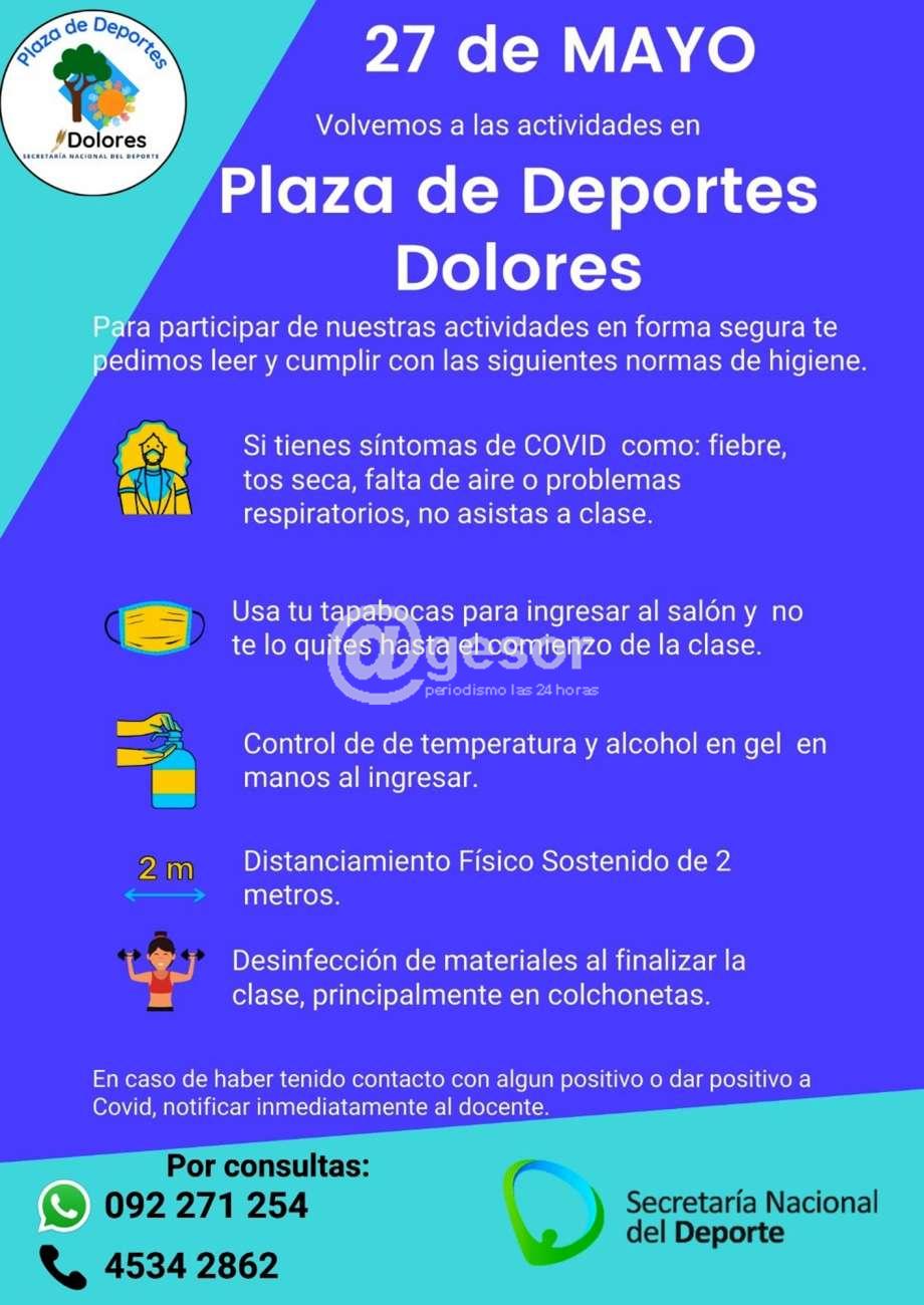 Este jueves 27 de mayo retornas las actividades de la Plaza de Deportes de Dolores.
