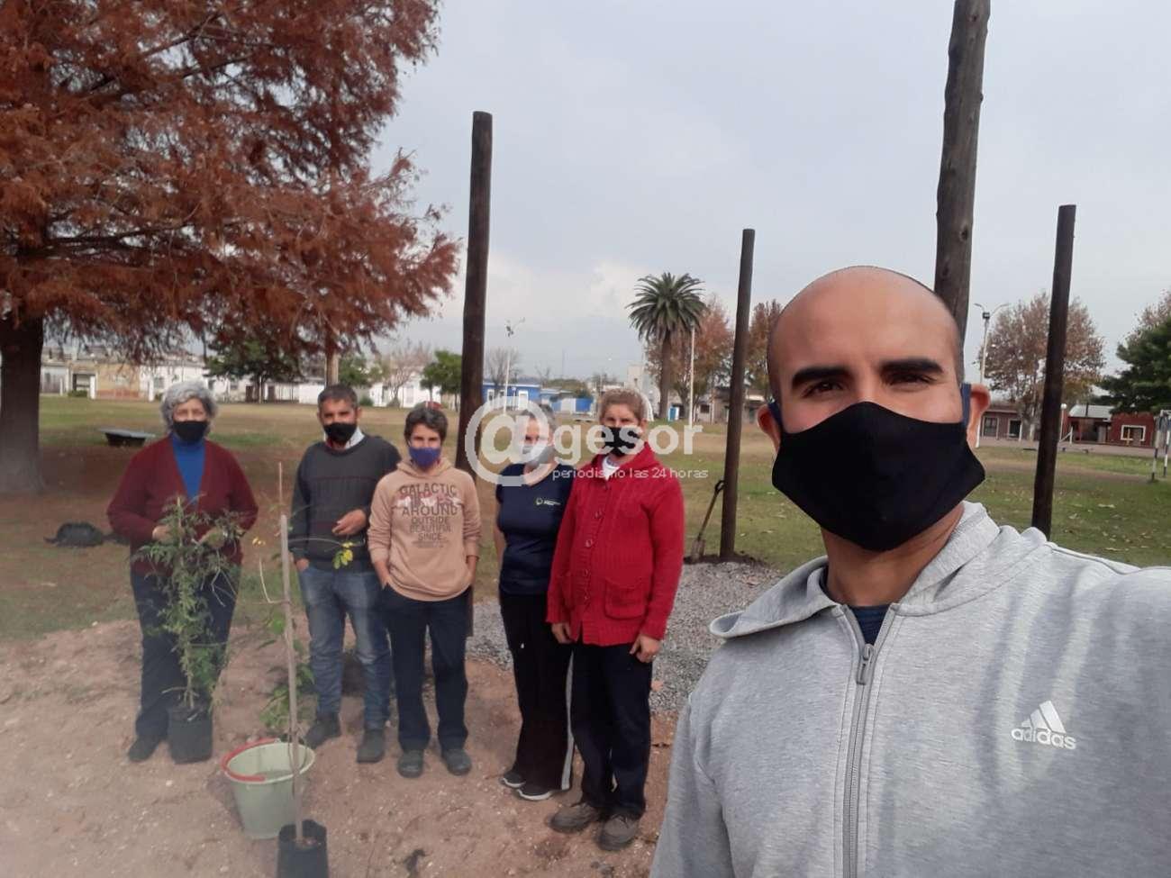 En la ocasión se acompañó al personal de servicio de Plaza en la plantación de árboles para el ornato de la futura glorieta a instalarse cerca de la cancha de Raffa Volo.