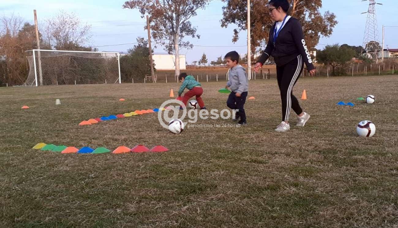 En las fotos se aprecia el trabajo profesional de los noveles licenciados en Educación Física Matías Carrato y Florencia Godoy (hija del recordado, recientemente desaparecido Raúl Godoy, quien ha dejado un gran legado en Florencia quien trabaja con edades tempranas en la formación física básica motriz y futbolística), además de Nelson Gil y de Rodrigo Eugüi.