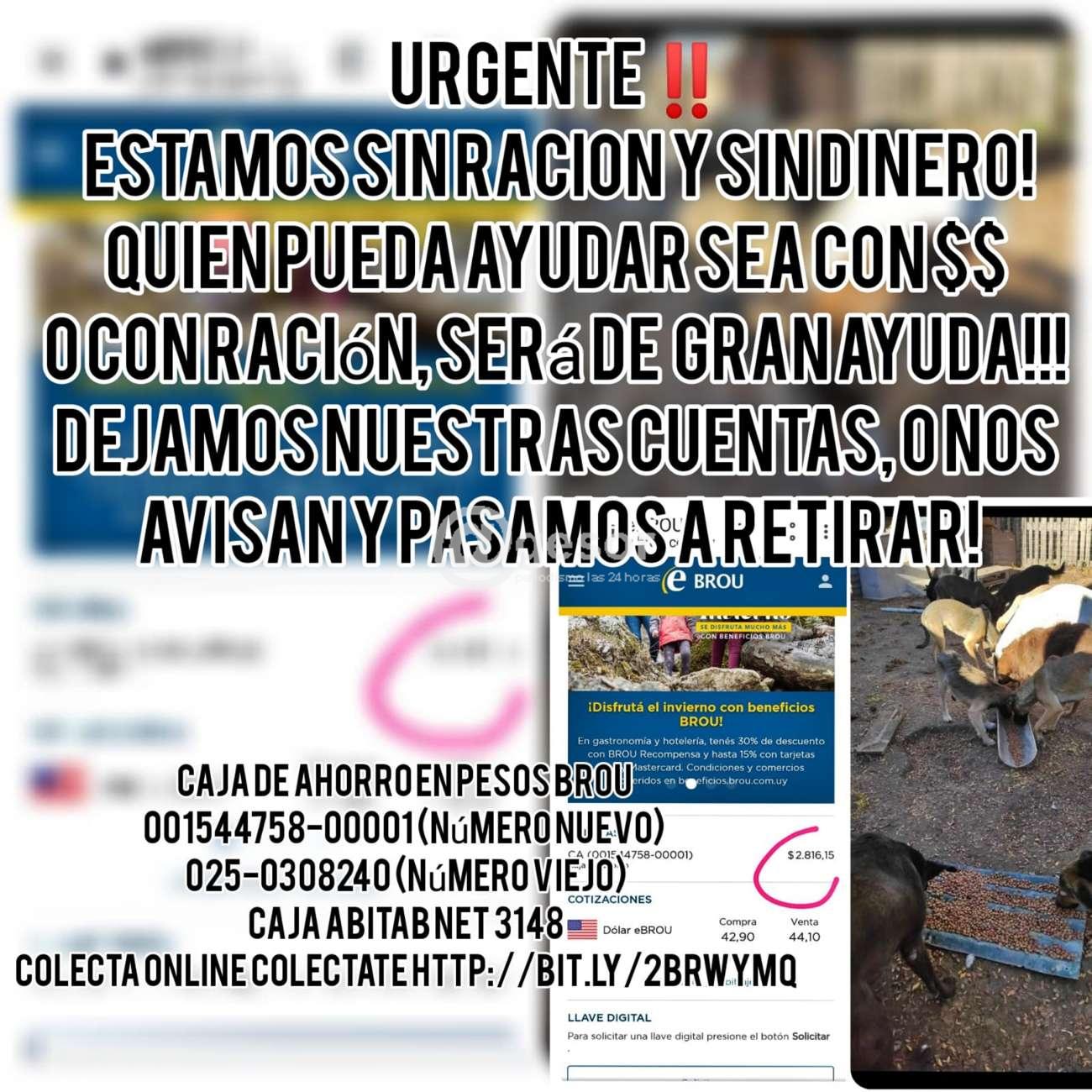 Tenemos algo de 9 mil pesos (casi 3 mil en BROU y 6 mil pesos de cuotas sociales) y ración en depósito hasta mañana (jueves).