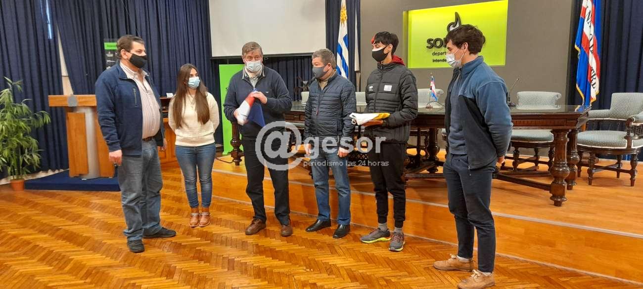 El Intendente de Soriano, Guillermo Besozzi homenajeó e hizo entrega del Pabellón Nacional y de la bandera de Soriano a dos jóvenes atletas de nuestro departamento quienes participarán en el Campeonato Sudamericano de Atletismo Sub 20 a realizarse en Lima Perú.