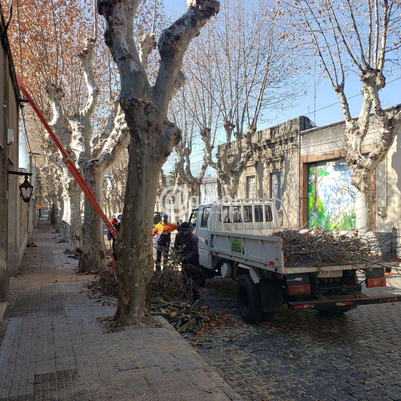La Intendencia de Soriano incrementó los trabajos de poda de limpieza en árboles del ornato público en la ciudad de Mercedes y en algunas localidades del interior del departamento.