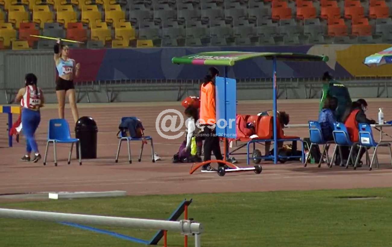 El primer lugar fue para la atleta de Colombia, Valentina Barrios Bornacelli con 47.97 metros y tercera se ubicó la paraguaya Fiorella Veloso Nazer con 44.02 metros. En la fotografía el momento en que va a lanzar Manuela para ser el mejor segundo registro.