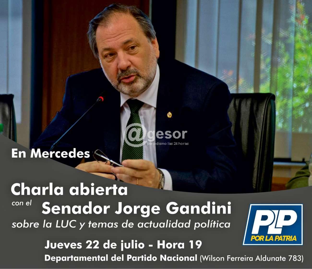 Este jueves 22 a las 19.00 horas en sede de la Departamental del Partido Nacional, ubicada en Wilson Ferreira Aldunate 783 de Mercedes, estará realizándose charla abierta con el Senador Jorge Gandini, del sector Por la Patria, que estará exponiendo sobre la LUC (Ley de Urgente Consideración) y temas de actualidad política.