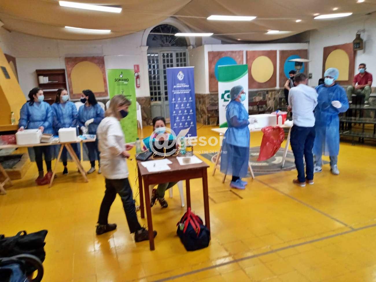 Comenzó a las 14.00 y culmina a las 18.00 horas y se está inoculando a muy buen ritmo con la labor conjunta de los equipos de funcionarios de la Lucha Antituberculosa y Enfermedades Prevalentes y de los distintos prestadores de salud ASSE, CAMS, con el apoyo del MSP, la coordinación del CECOED, el respaldo de la Intendencia de Soriano y el valioso apoyo de INAU PROPIA, Interact, Rotaract, Mides.