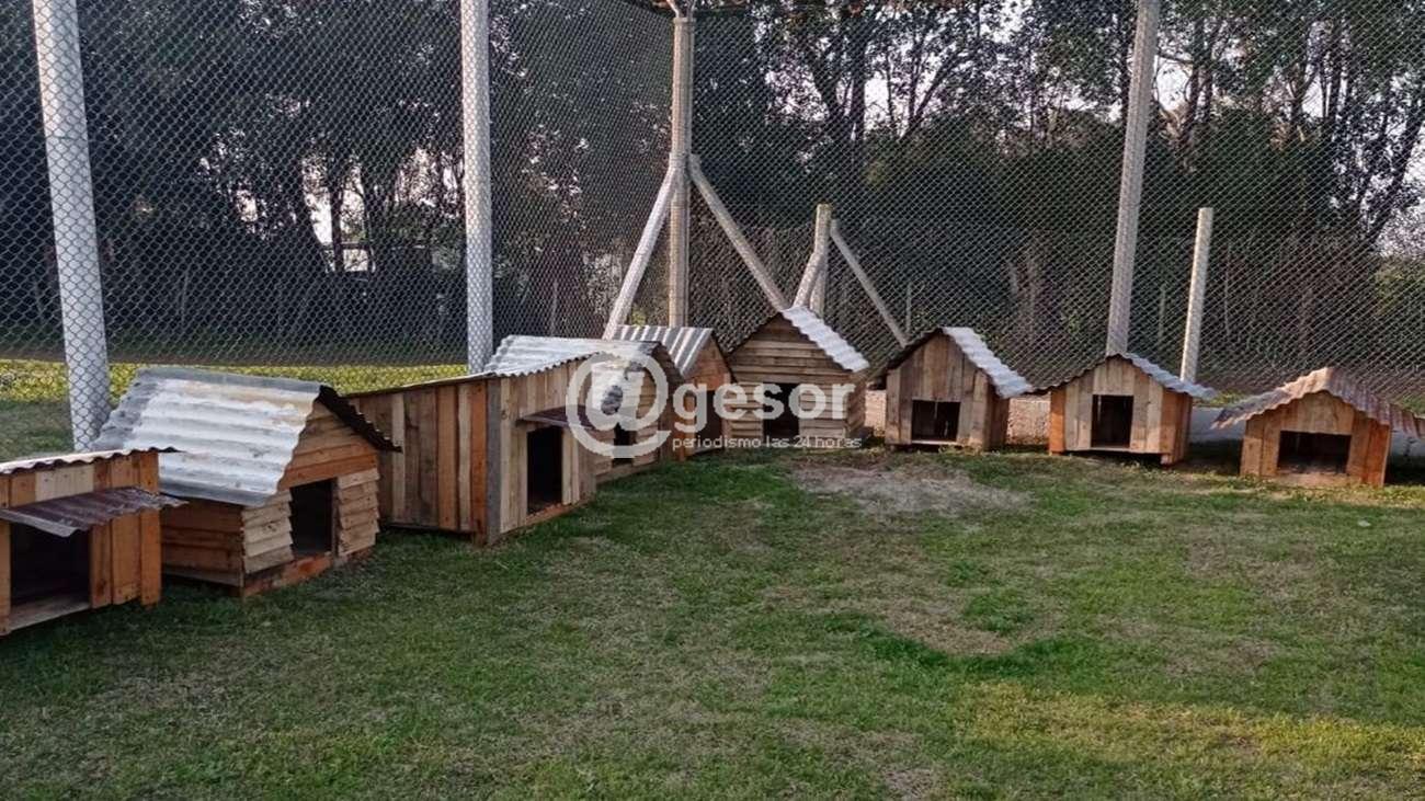 Allí un grupo de personas privada de libertad construyeron casillas de madera y chapa para los perros que están a resguardo del refugio San Francisco de Asís de Mercedes. Una de las tareas emprendidas por los internos del INR N° 24.