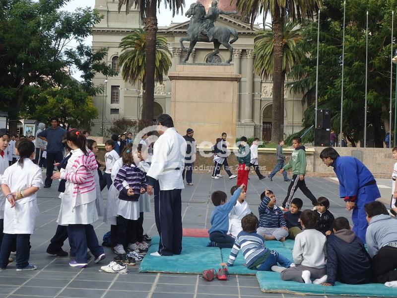 Mengen comenzó señalando: “hoy estamos convocando a través de la Red Interinstitucional de Organizaciones Públicas y Privadas afines con el deporte y la salud, convocamos a mantener una actividad física diaria al menos 15 minutos y por eso tenemos la participación de todos estos niños aquí”.