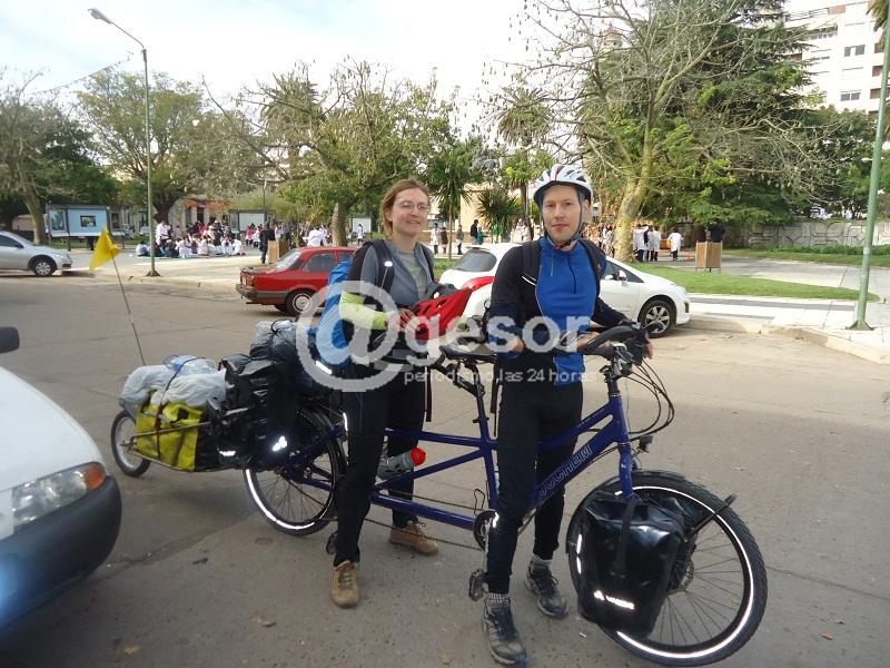 Daniel de 36 años y Alice de 33 años, jóvenes alemanes, son novios desde hace 5 años, pero por ahora no piensan en casarse, “tal vez después”, dijeron los oriundos de la ciudad de Leipzig, de la zona este de Alemania. En avión llegaron a Australia, Nueva Zelanda y Argentina. En América su recorrida empezó por Argentina, siguiendo por Chile y Uruguay. Partieron en bicicleta desde Alemania a un encuentro con la vida cotidiana de los hombres y mujeres de los pueblos del mundo. Han viajado desde casi 6 meses.