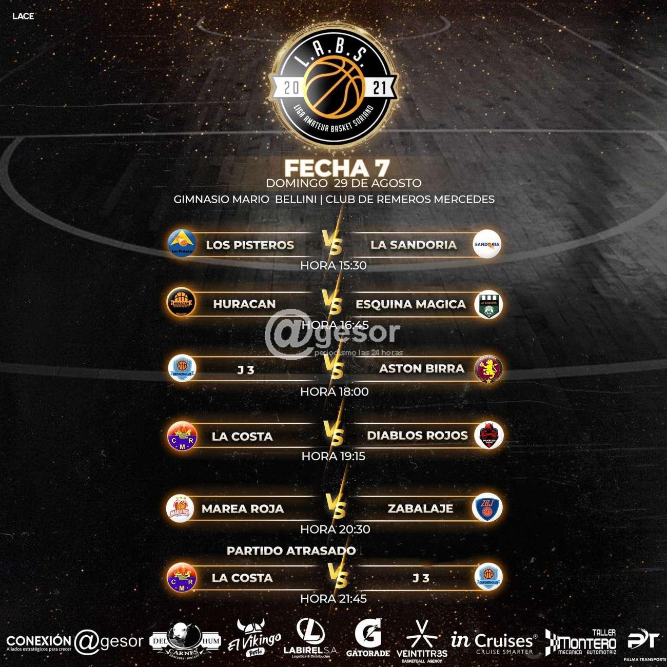 Este domingo se disputa la séptima fecha del torneo de la Liga Amateur de Basket que está entrando en el tramo definitorio del clasificatorio a la siguiente fase, recordamos que de los diez equipos pasan ocho a la próxima etapa del campeonato.