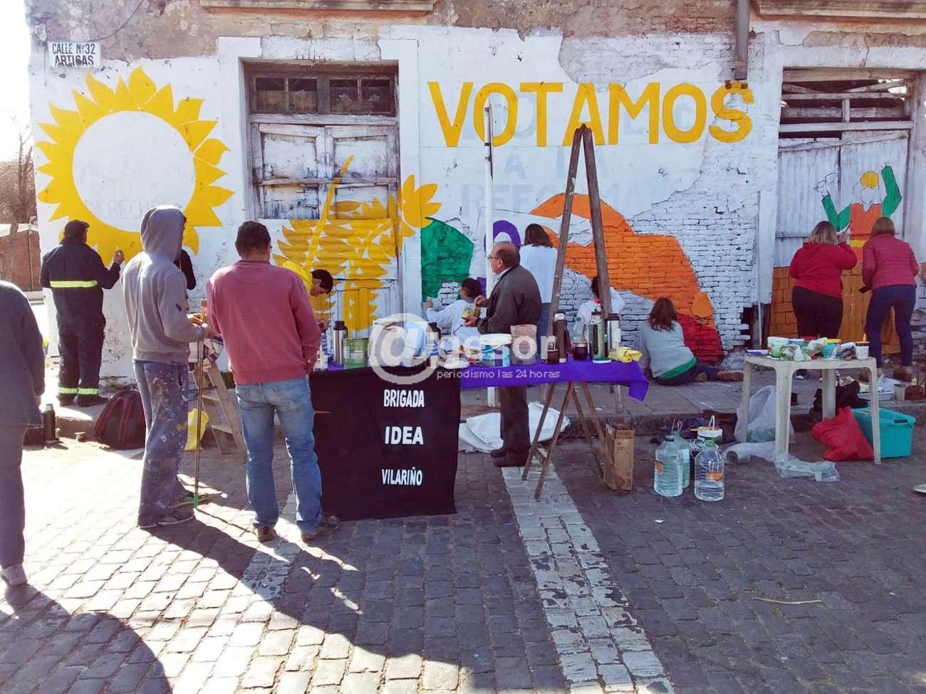 Mientras la Corte Electoral continúa con el proceso de validación de firmas para determinar la convocatoria, en caso de alcanzarse el porcentaje establecido por la ley para llamar a referéndum con la finalidad de poner a consideración de la población 135 de la Ley de Urgente Consideración (LUC), militantes del Frente Amplio, entre ellos integrantes de la Brigada Idea Vilariño, pintan los muros de la añosa finca de Casagrande y Artigas en Mercedes, llamando a votar SI por la derogación de los mencionados artículos.