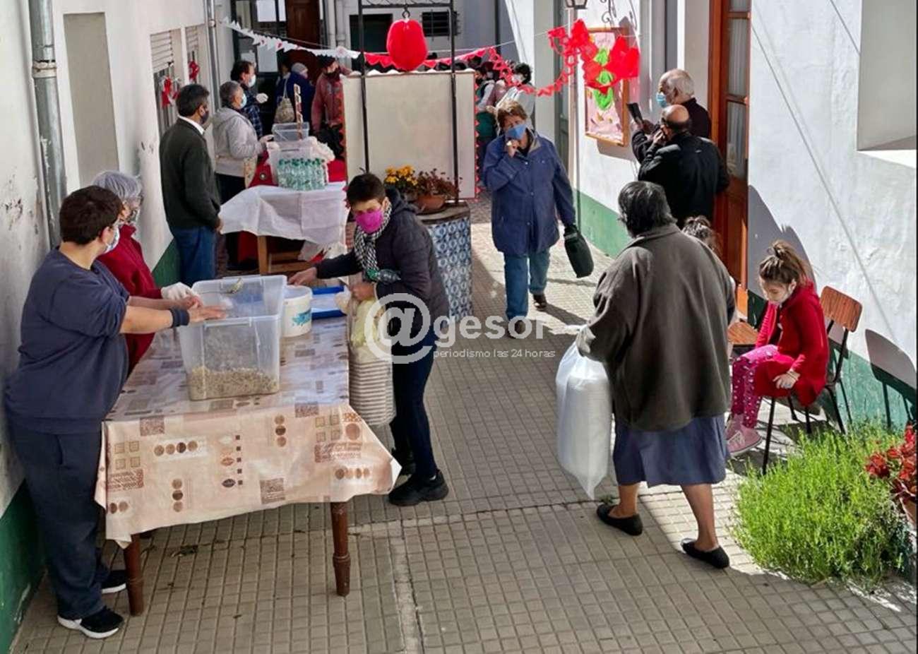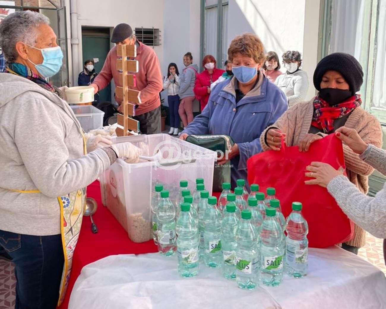Este martes en patio de la Catedral Nuestra Señora de las Mercedes, a través de la Pastoral Social, se distribuyeron las 250 porciones del mega strogonoff solidario enviadas por la Fundación Corazoncitos que a nivel nacional colaboró con 30 merenderos entre ellos la obra que realiza la Pastoral Social con familias carenciadas que recibieron esta asistencia.