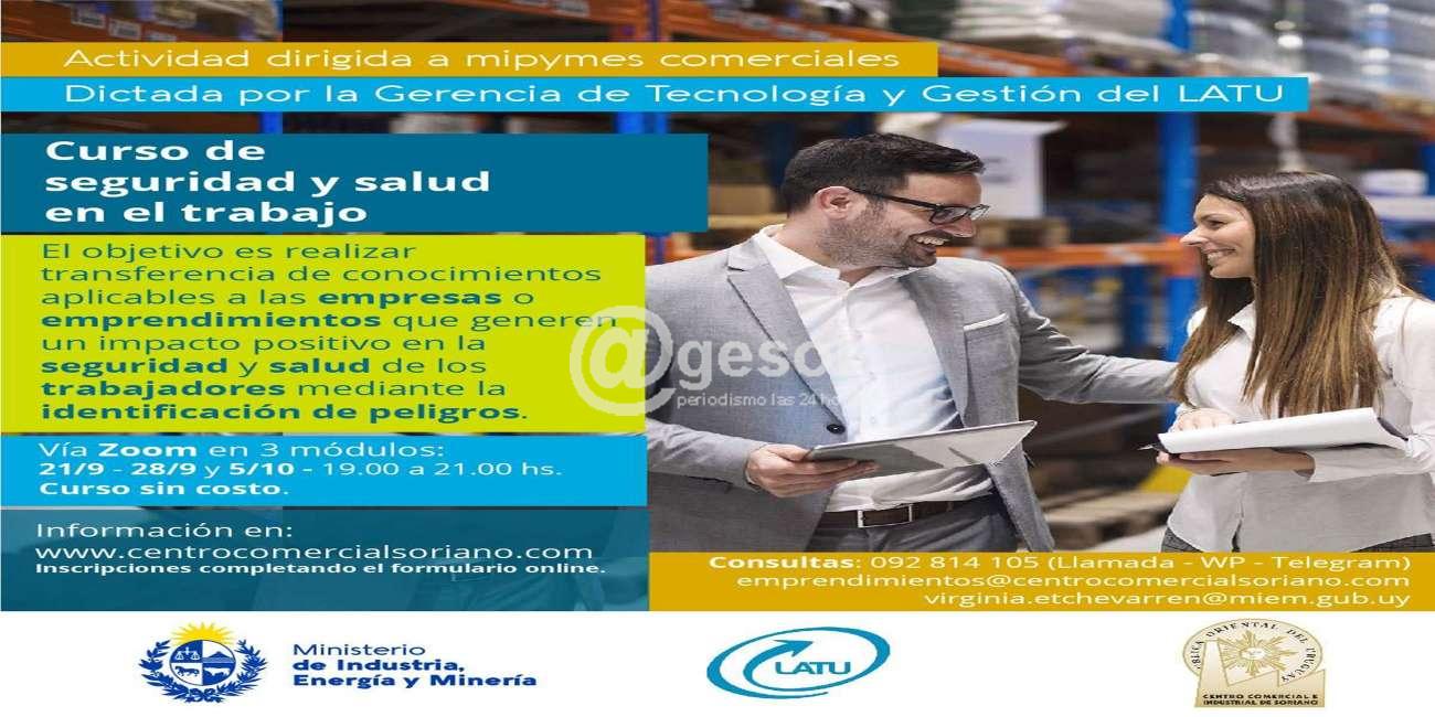 El Centro Comercial e Industrial de Soriano en conjunto con el LATU y el Ministerio de Industrias realizarán este Curso de seguridad y salud en el trabajo. Una capacitación gratuita dirigida a personal de mipymes dedicadas a comercio y servicio.