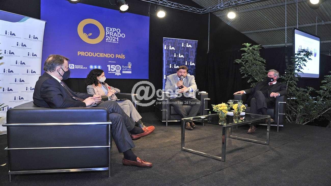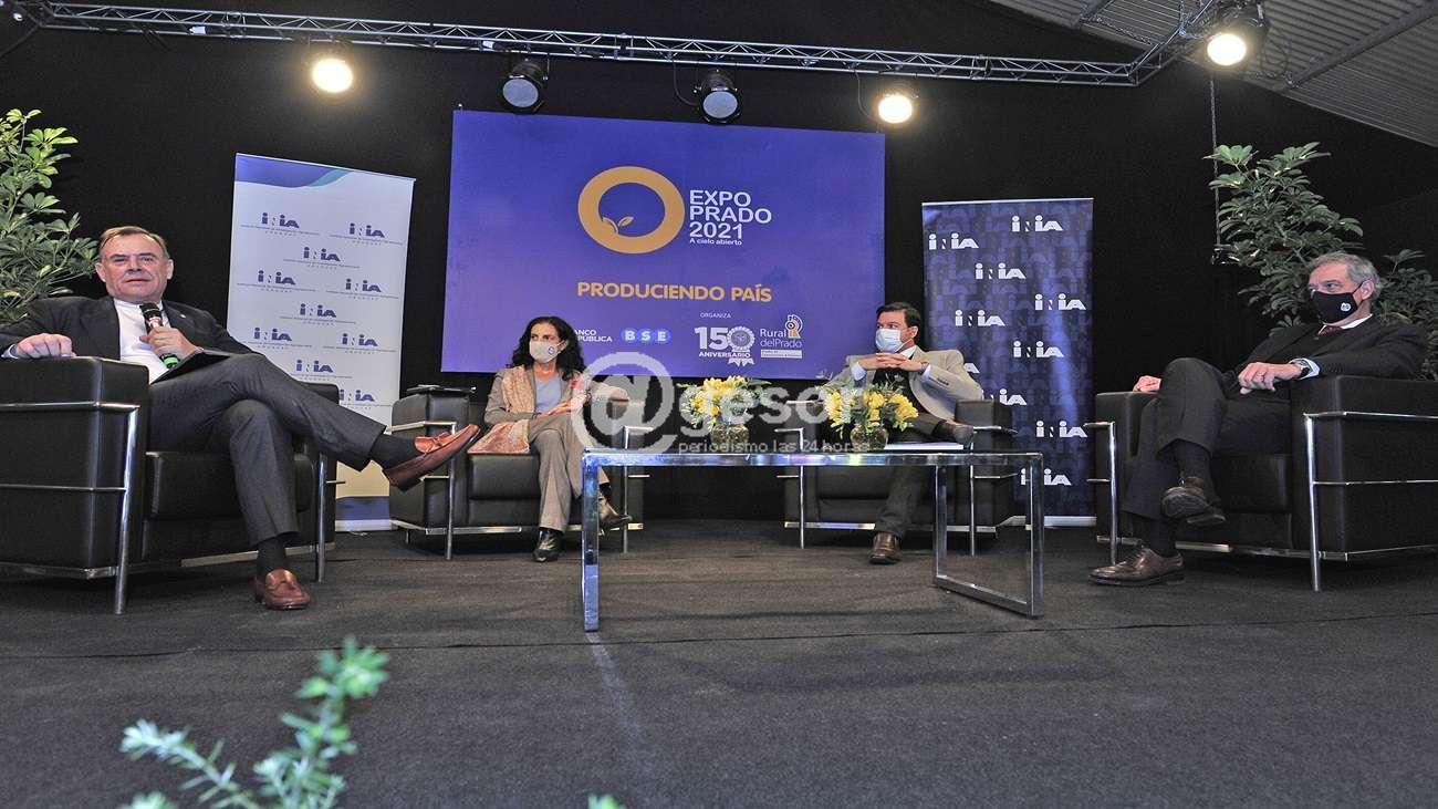 “Uruguay ¿un país diferente? Los desafíos de la sostenibilidad” es el nombre de la mesa de debate organizada por el Instituto Nacional de Investigación Agropecuaria (INIA), este martes 14 en el salón multiespacio de la Expo Prado 2021. En el evento, estuvieron presentes la vicepresidenta de la República, Beatriz Argimón, y el secretario de la Presidencia de la República, Álvaro Delgado, y disertaron los ministros de Ambiente, Adrián Peña; de Economía y Finanzas, Azucena Arbeleche; de Ganadería, Agricultura y Pesca, Fernando Mattos, y el presidente y el vicepresidente del INIA, José Bonica y Walter Baerthgen, respectivamente.