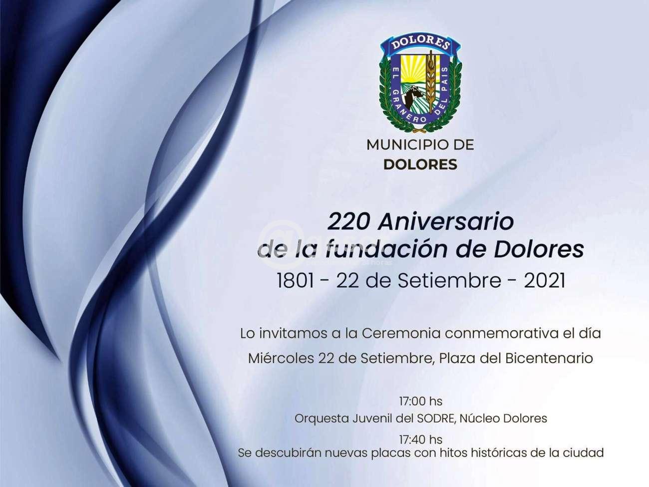 Este miércoles 22 el Municipio de Dolores invita a compartir la celebración del 220 aniversario de la fundación de Dolores, ocurrida el 22 de setiembre de 1801.