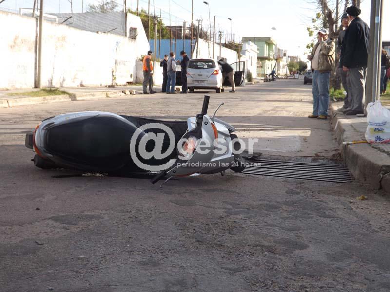 Un nuevo accidente de tránsito fue protagonizado por un auto y una moto, al chocar en la esquina de Varela y Detomasi de la ciudad de Mercedes. El automóvil Nissan Tiida, matrícula KMB 1073, que se dirigía por calle Detomasi al oeste, era conducido por Florencia Guastavino de 34 años, quien viajaba acompañada por un bebé, mientras que la moto scooter Suzuki 50 cc., matrícula KMX 322, era guiada por la joven de iniciales A.C. de 16 años, conduciéndose sin casco protector.