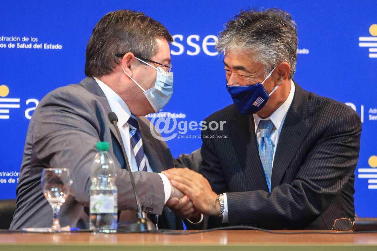 Participaron del acto, el Embajador de Japón, Tatsuhiro Shindo, el Representante del BID, Matías Bendersky, el Presidente de ASSE, Leonardo Cipriani, el Vicepresidente de la Institución, Marcelo Sosa, el Vocal, Julio Micak, el Director Ejecutivo de AGESIC, Hebert Paguas, entre otras autoridades.