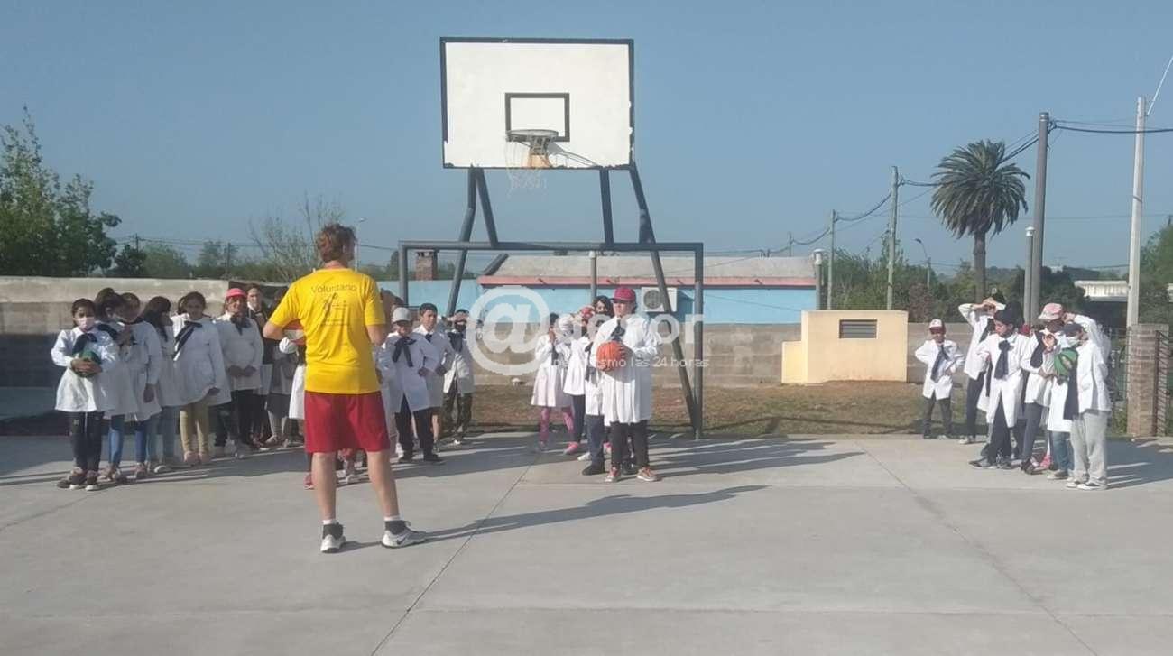 Medio centenar de niños de 5to. y 6to. de la Escuela 102 Fernán Silva Valdés participación este lunes de una jornada de basquetbol coordinada por el Club San Lorenzo en el marco del Programa Básquetbol en mi Barrio que la institución azulgrana comparte con River Plate, la Comisión de Fomento del Barrio Sur y Peñarol.