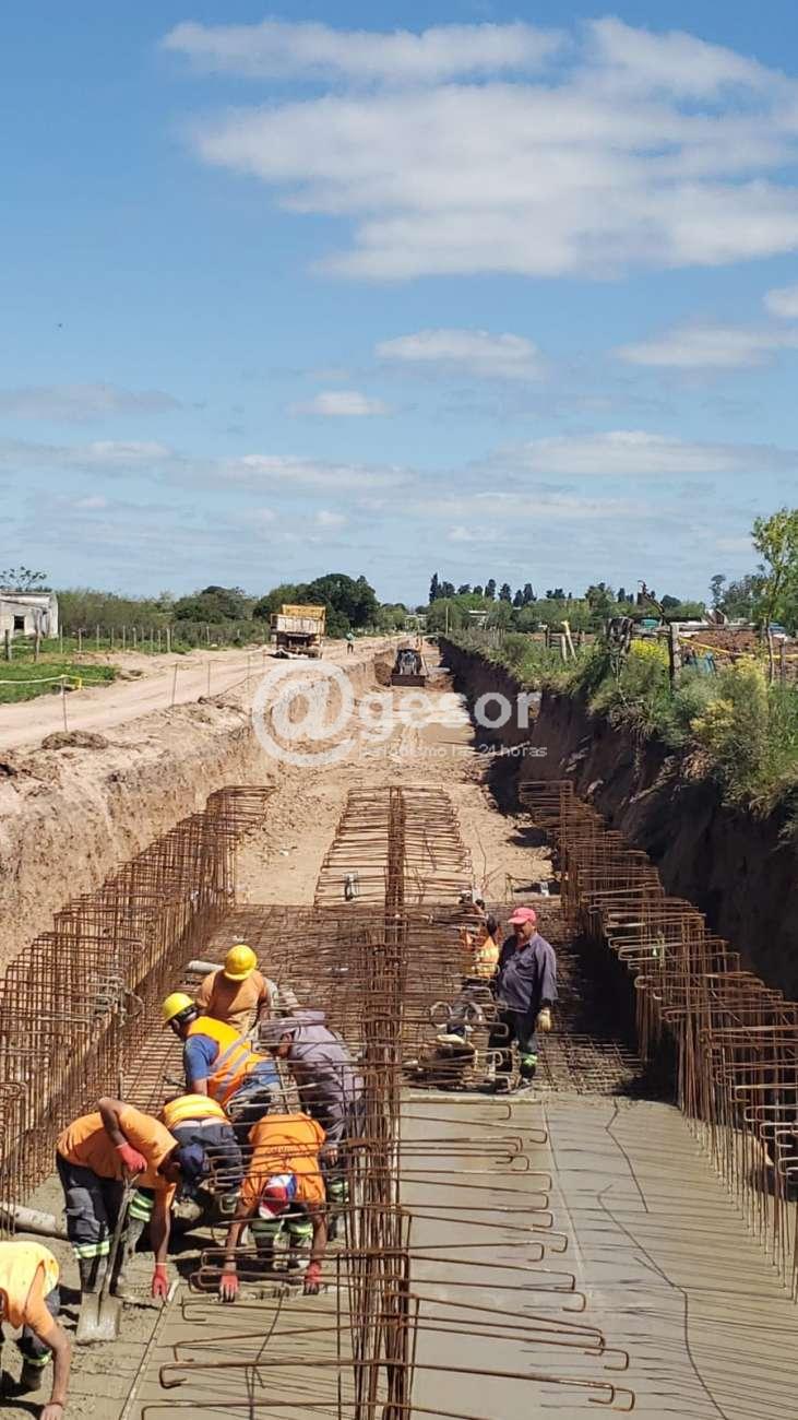 Progresan las obras de construcción del gran colector pluvial en el barrio San Lorenzo de la ciudad de Dolores, incluido las obras de acondicionamiento urbano que lleva adelante Intendencia de Soriano