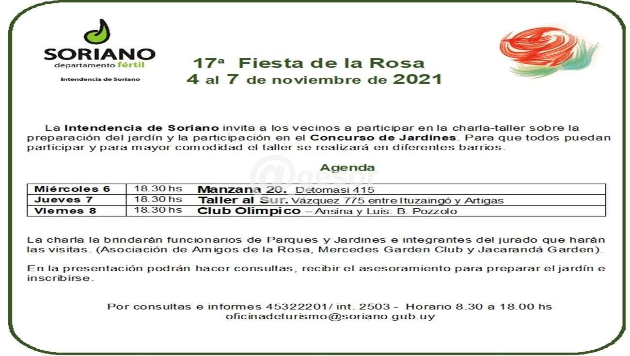 La Intendencia de Soriano invita a los vecinos a participar en la charla-taller sobre la preparación del jardín y la participación en el Concurso de Jardines. Para que todos puedan participar y para mayor comodidad el taller se realizará en diferentes barrios .